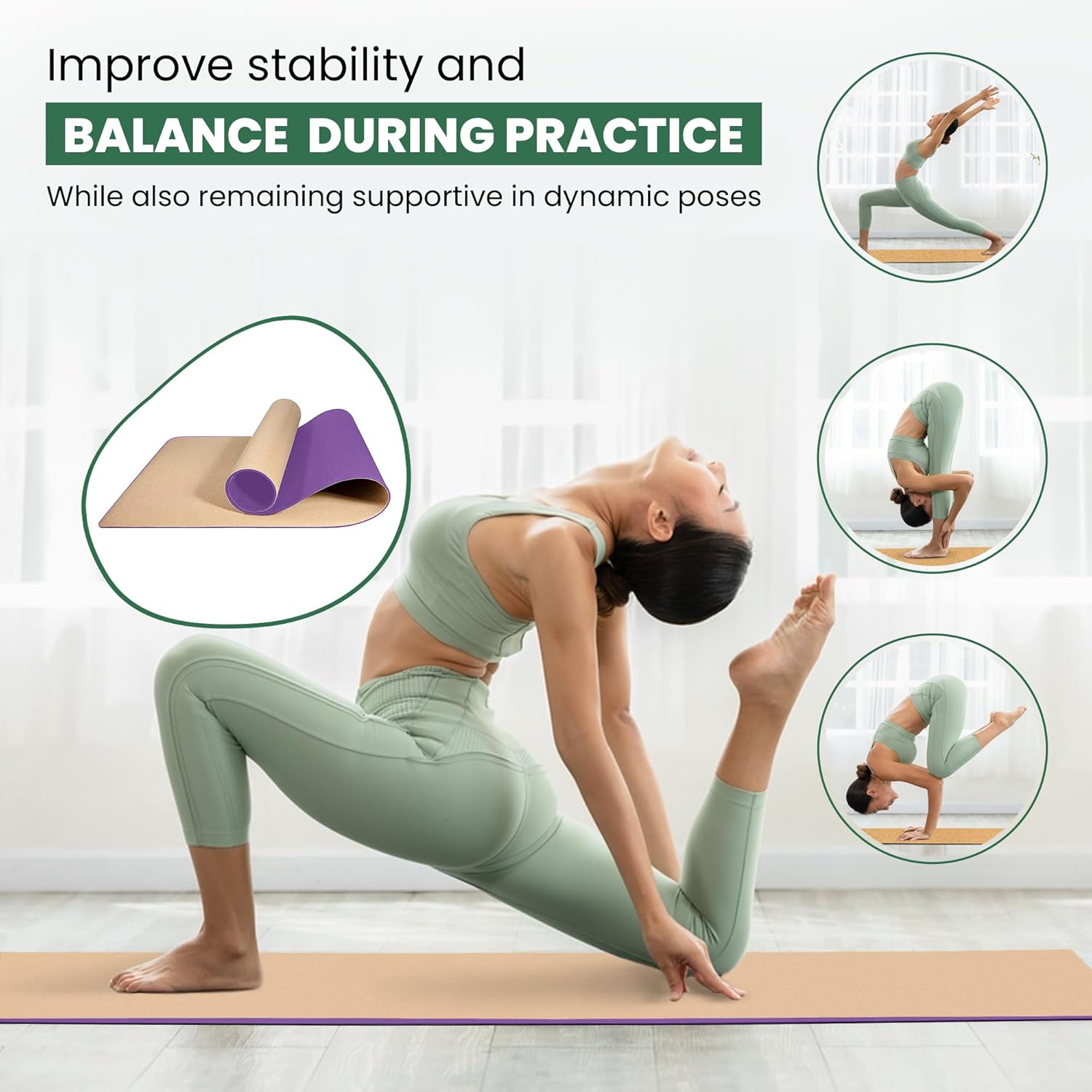 Ecological: Made of soft eco-friendly Cork and TPE. Cork is naturally hypo-allergenic and breathable and does not absorb water and sweat