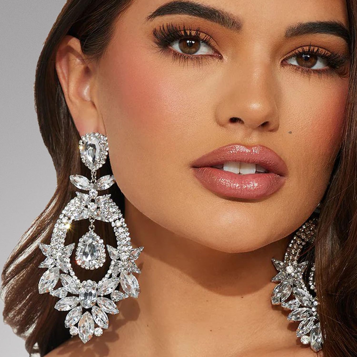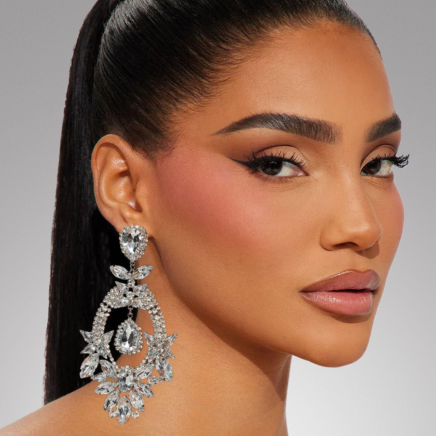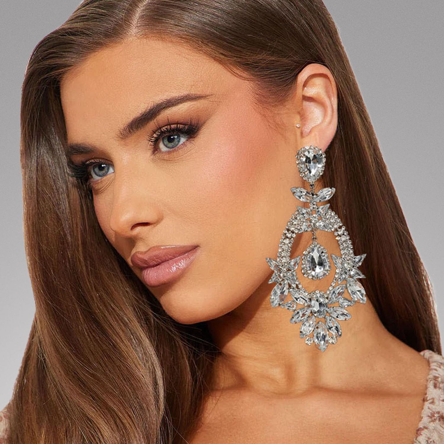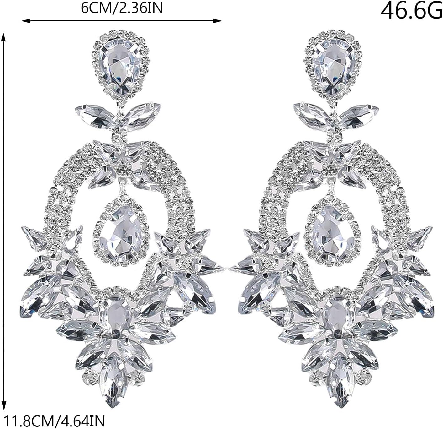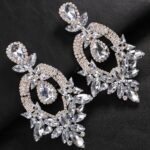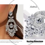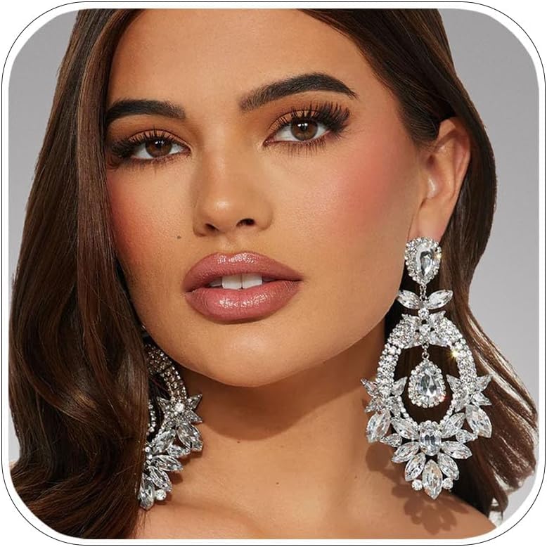 Costume Rhinestone Earrings, Large Dangling Trendy Bling Oversized Statement Earrings For Women Formal Prom Chandelier Drop Statement Earrings, Prom Jewelry Accessories, Silver