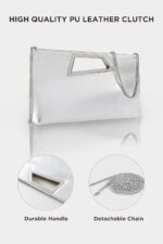 Features: Slightly sloping top of the clutch with irregular handle design will bring you a unique sense of beauty on every occasion. Besides, two magnetic buckles inside to ensure that items do not fall out.