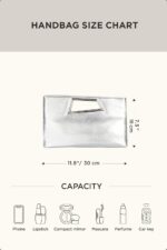 Capacity: iPhone Pro max, car key, compact mirror, lipstick, mascara and perfume.