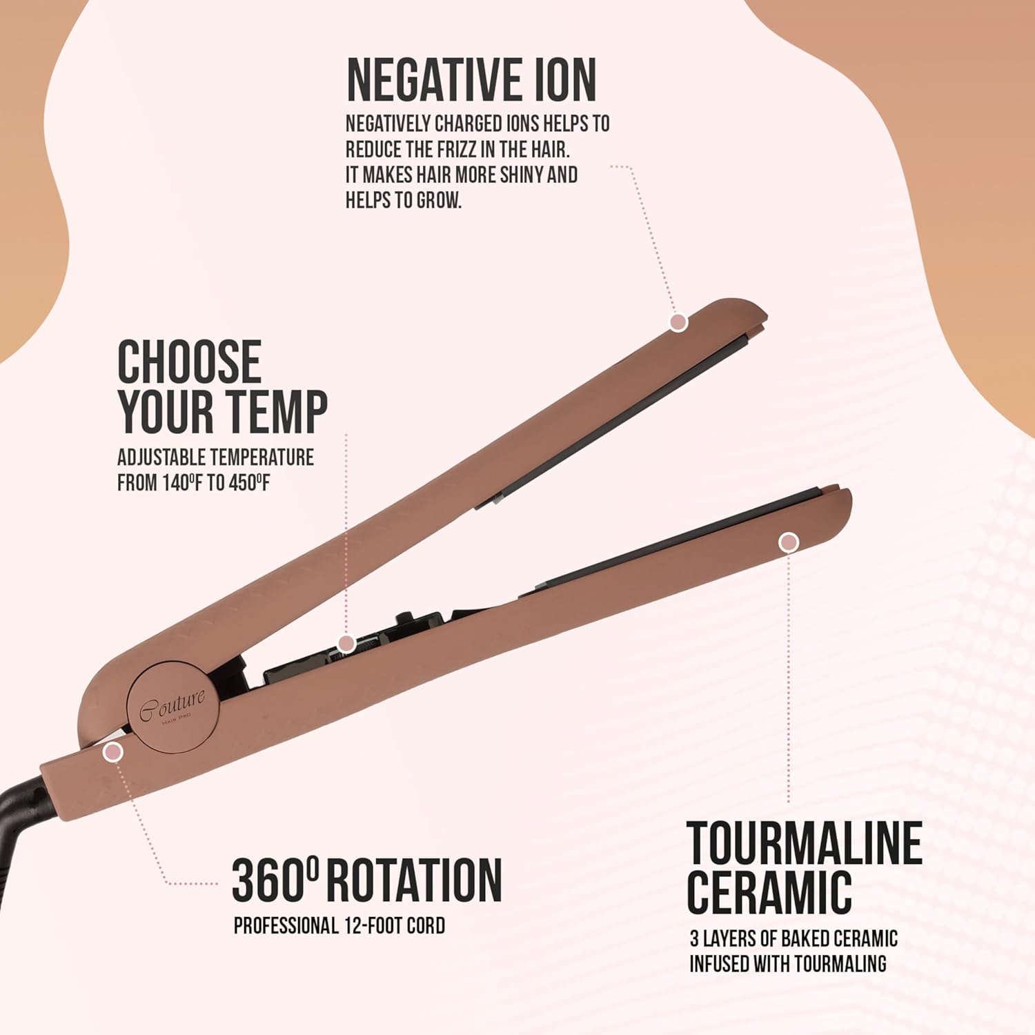 Couture Hair Pro Pure Ceramic Professional Hair Straightener – Fast Heat Up Flat Iron – Hair Straightener with Negative Ions More Shine and Less Frizz – Canadian Engineering (Rose Gold, 1.25)