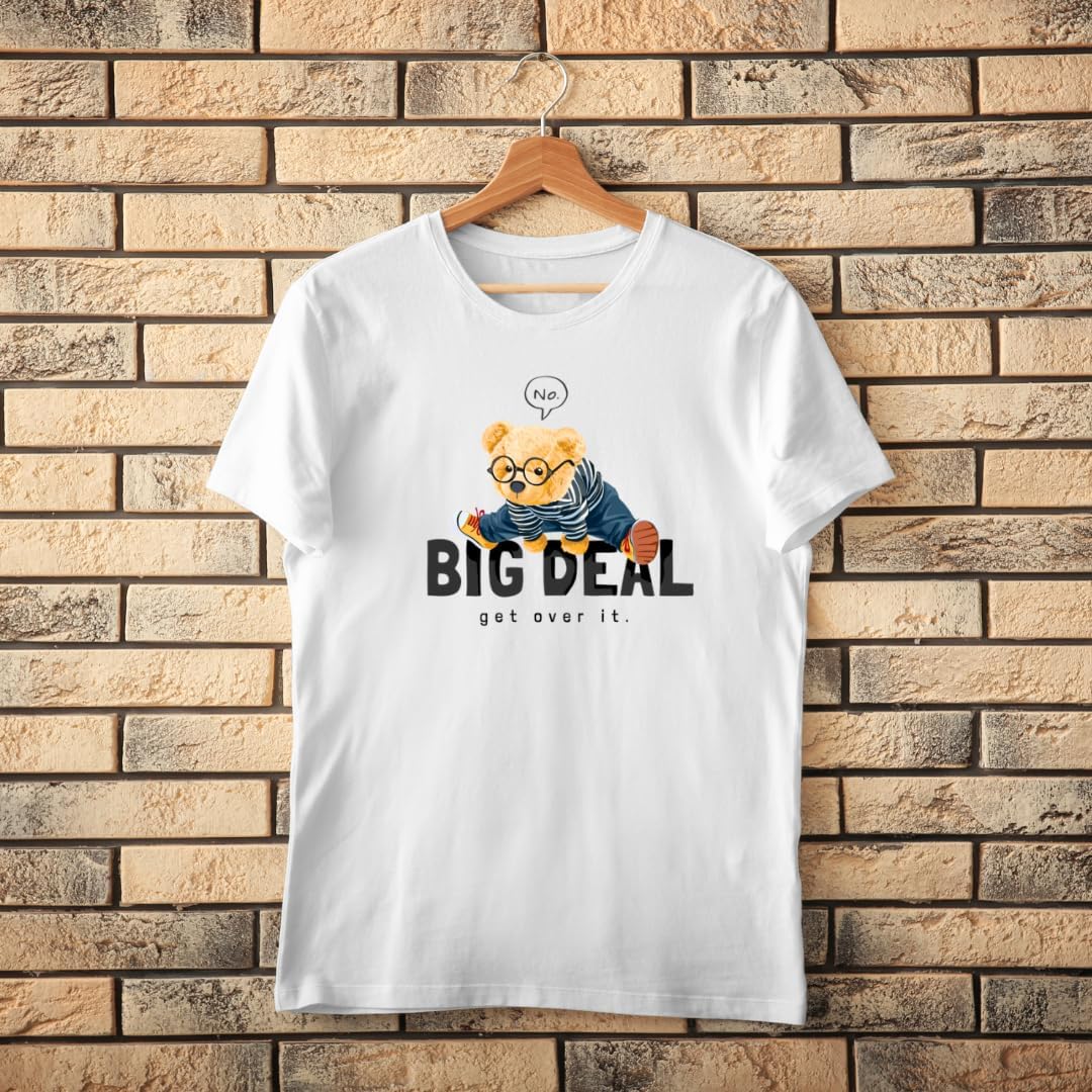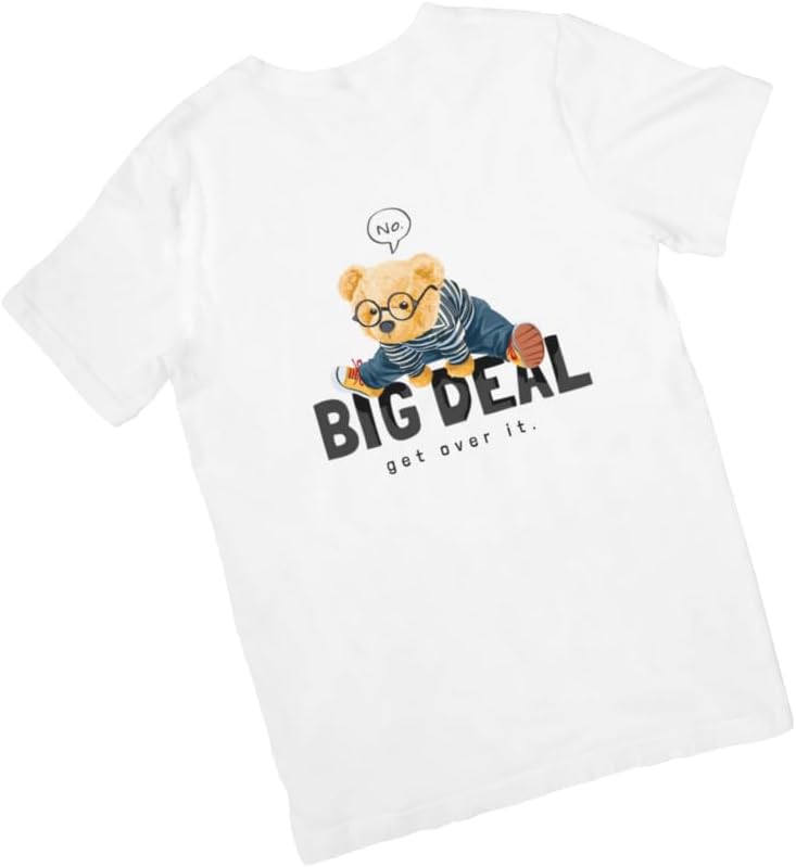 Cozican “No Big Deal” Graphic T-Shirt,Teddy Bear Print, Cotton T-Shirt for Men & Women, Unisex Shirt, Light Weight, Breathable, Cute Design