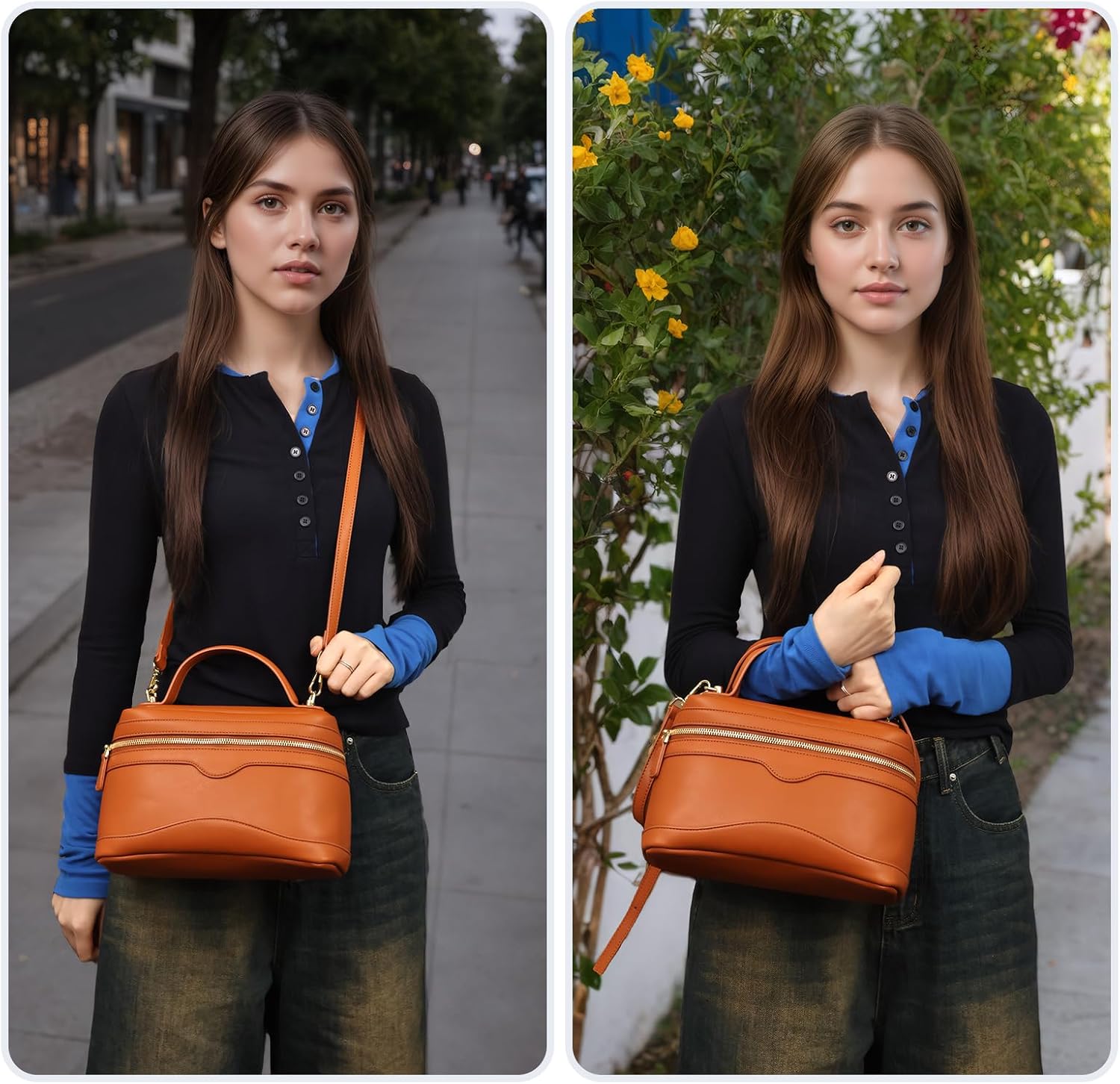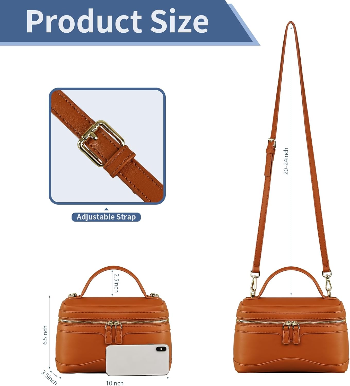 Crossbody Bag for Women Top-Handle Leather Bag Square Box Pouch Luxury Trendy Purse with Adjustable Strap