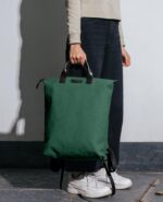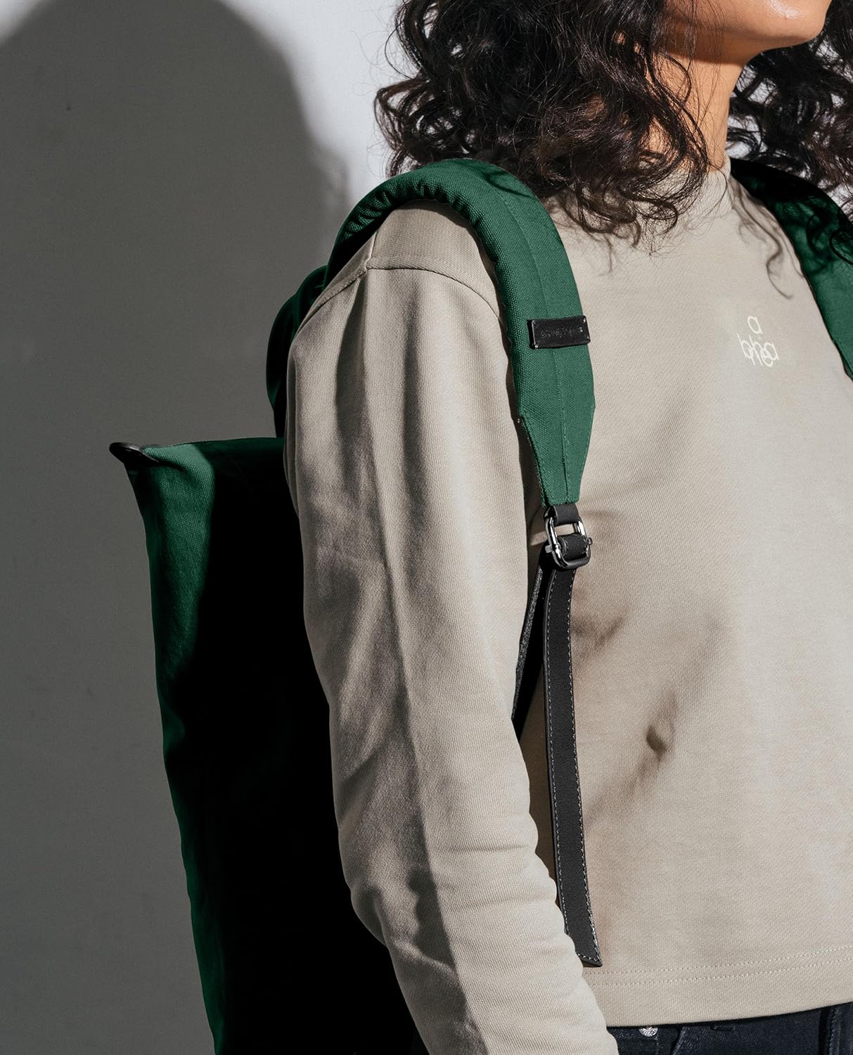 Fleet signature Canvas backpack. Trapezium shape voluminous main compartment. Contouring straps adjoint to leather extenders. Leather handles for a bi-purpose handling.