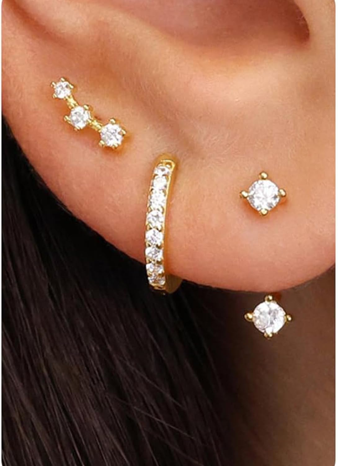 Dainty Gold Earrings Set for Women, 14K Gold Plated Hypoallergenic Earring,Trendy and Cute Earrings Stacks for Sensitive Ears, Huggie Hoop Earrings for Multiple Piercings (3 Pairs Set)
