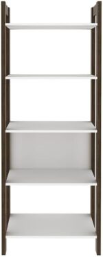 Danube Home Lean 4 Tier Bookcase/Display Cabinet | Modern Design Wooden Organiser Cupboard | Multifunctional Display Rack Bookcase For Home Office L 65 x W 35.5 x H 165.5 cm – White/Walnut