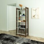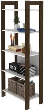 The Lean 4-Tier Bookcase/Display Cabinet is a versatile and durable storage solution with a contemporary design, making it a great addition to modern home decor. Crafted from high-quality engineered wood and solid wood, the cabinet is sturdy and durable. It features five open shelves that provide display space for showcasing items and concealed storage for keeping things organized. The classic combination of walnut shade and white adds a touch of elegance to the cabinet.