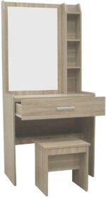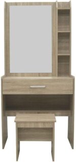 Danube Home Supreme 1 Drawer Tall Dresser With Stool | Durable Vanity Table | Dressing Makeup Desk With Storage | Modern Design Bedroom Furniture L79.5xW40.5xH169.5cm – French Sonoma Oak