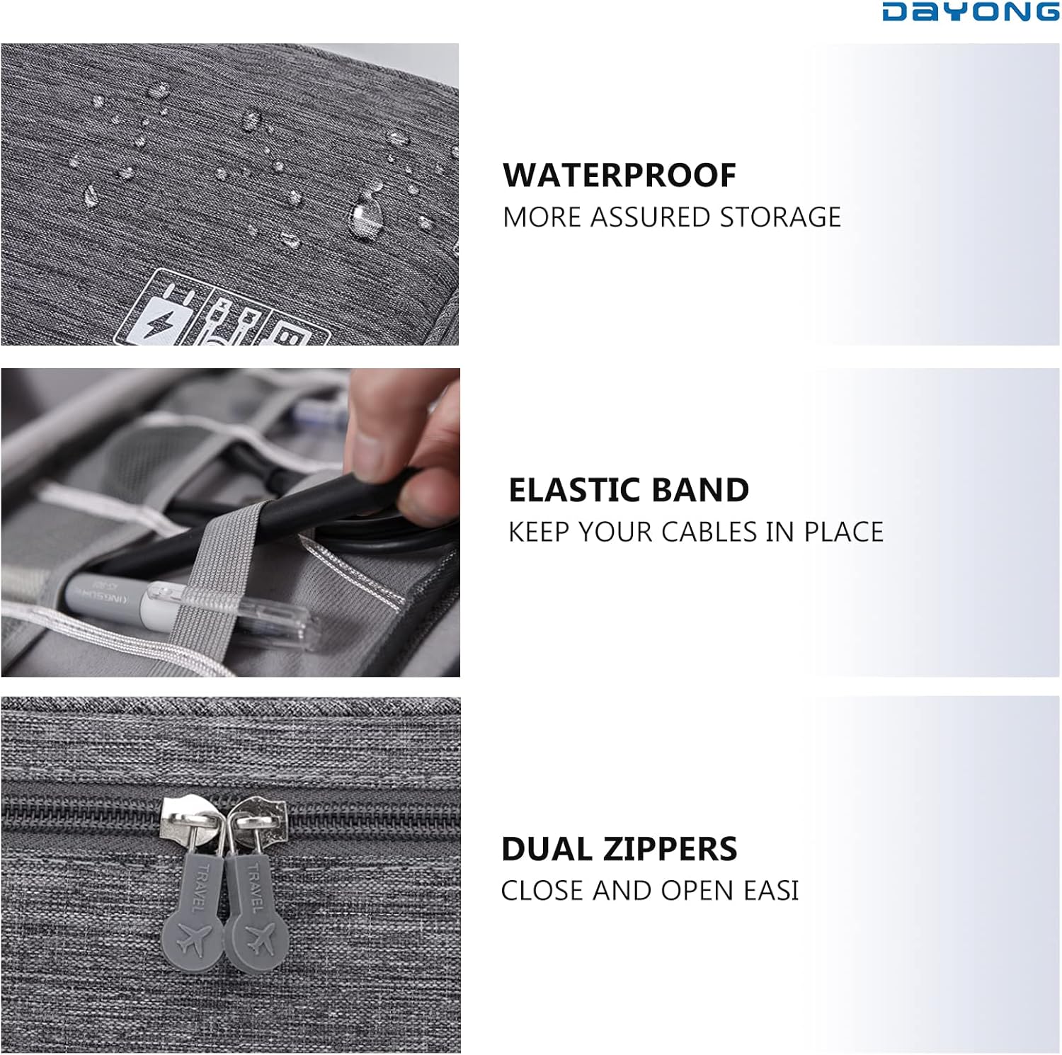DAYONG Cable Organizer Bag, Electronic Accessories Bag, Portable Digital Storage Bag, Travel Gadgets Storage Case, Cable Organizer Bag Gadget Carry Bag for Hard Drives, Cables, Power, USB(Grey)