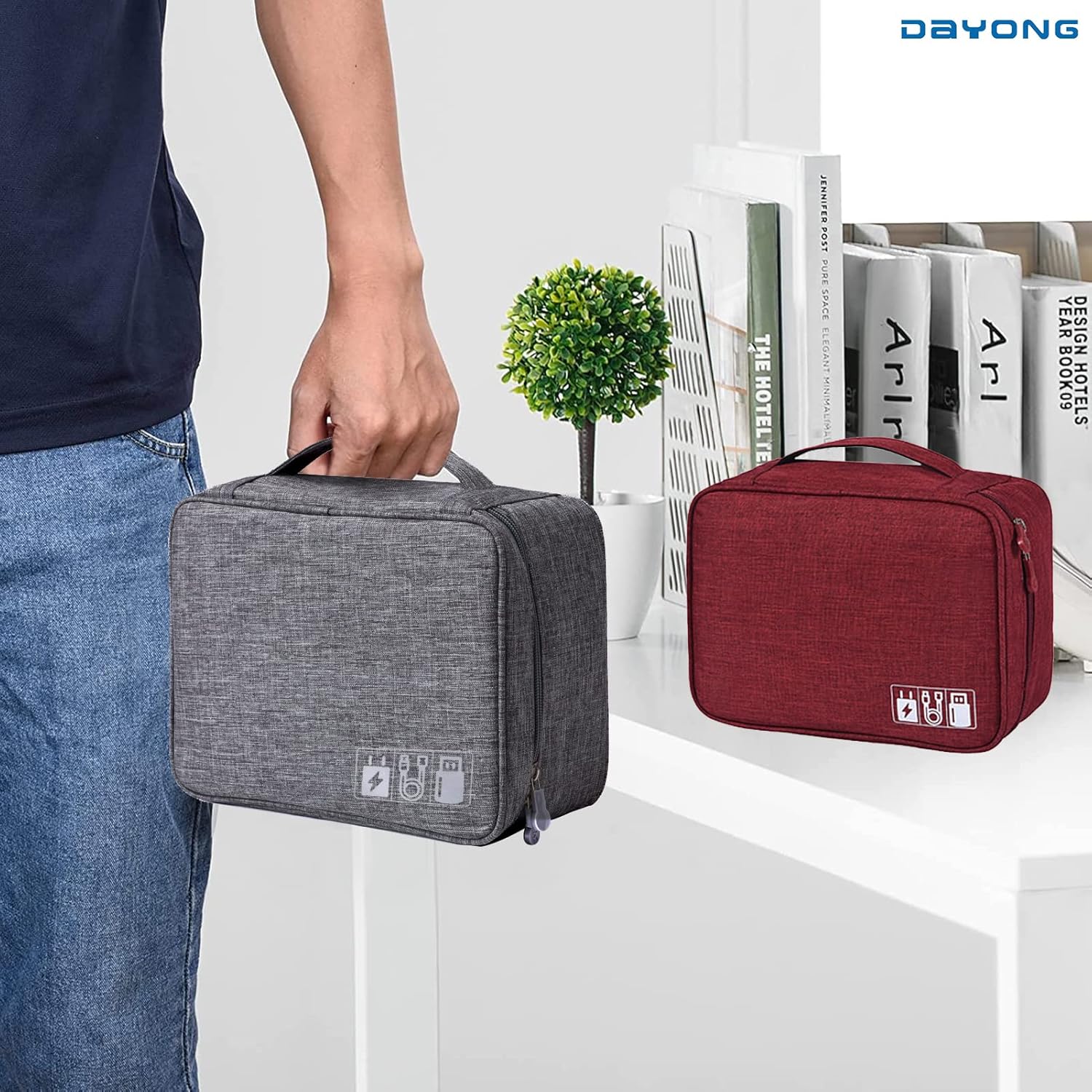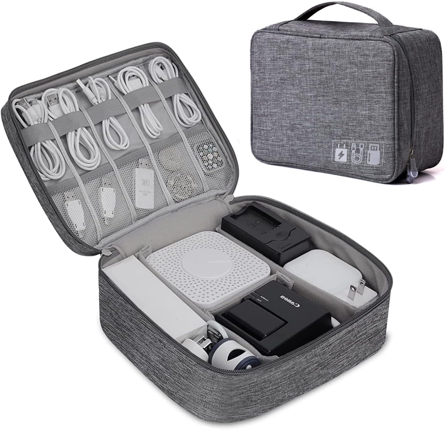 【GADGET ORGANIZER BAG】- Design with a strong grab handle for easily carrying everything you need, 2-way zippers make it easier to open and close.versatile Organizer is a top solution for small electronics, a must-have for daily life and travel.