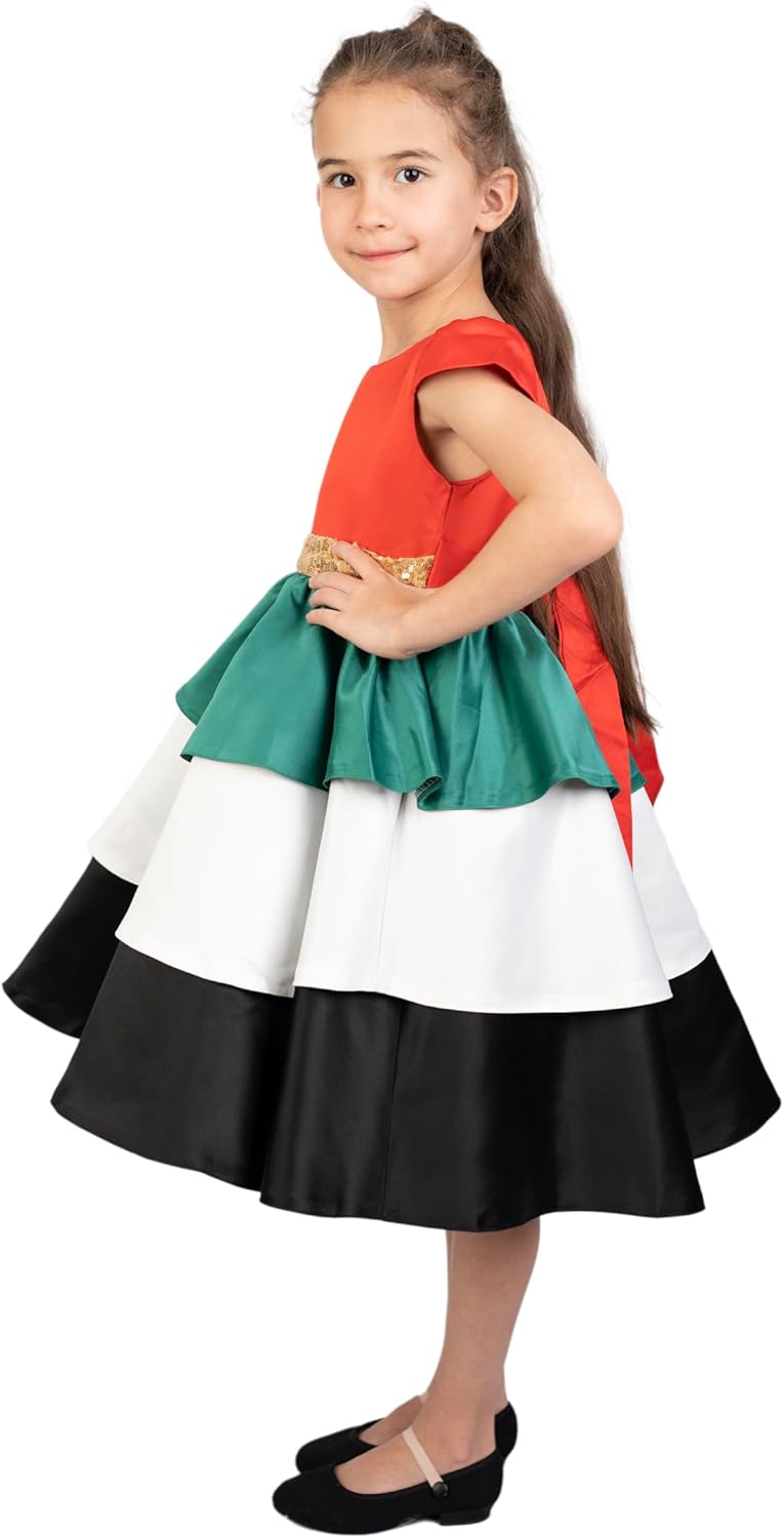 Solid Round neck dress UAE Flag National Day Dress for Girls Can be worn for school functions, Flag Day, National Day and costume party. This is a knee length dress. It is made from polyester. Very comfortable dress, soft easy wear and can be worn for any season Care handwash and lay flat to air dry