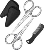 DELFINO Beard Trimming Scissors Set, Grooming Scissors for Men and Mustache Beard Comb Beard Grooming Trim Scissor Kit with Storage Bag