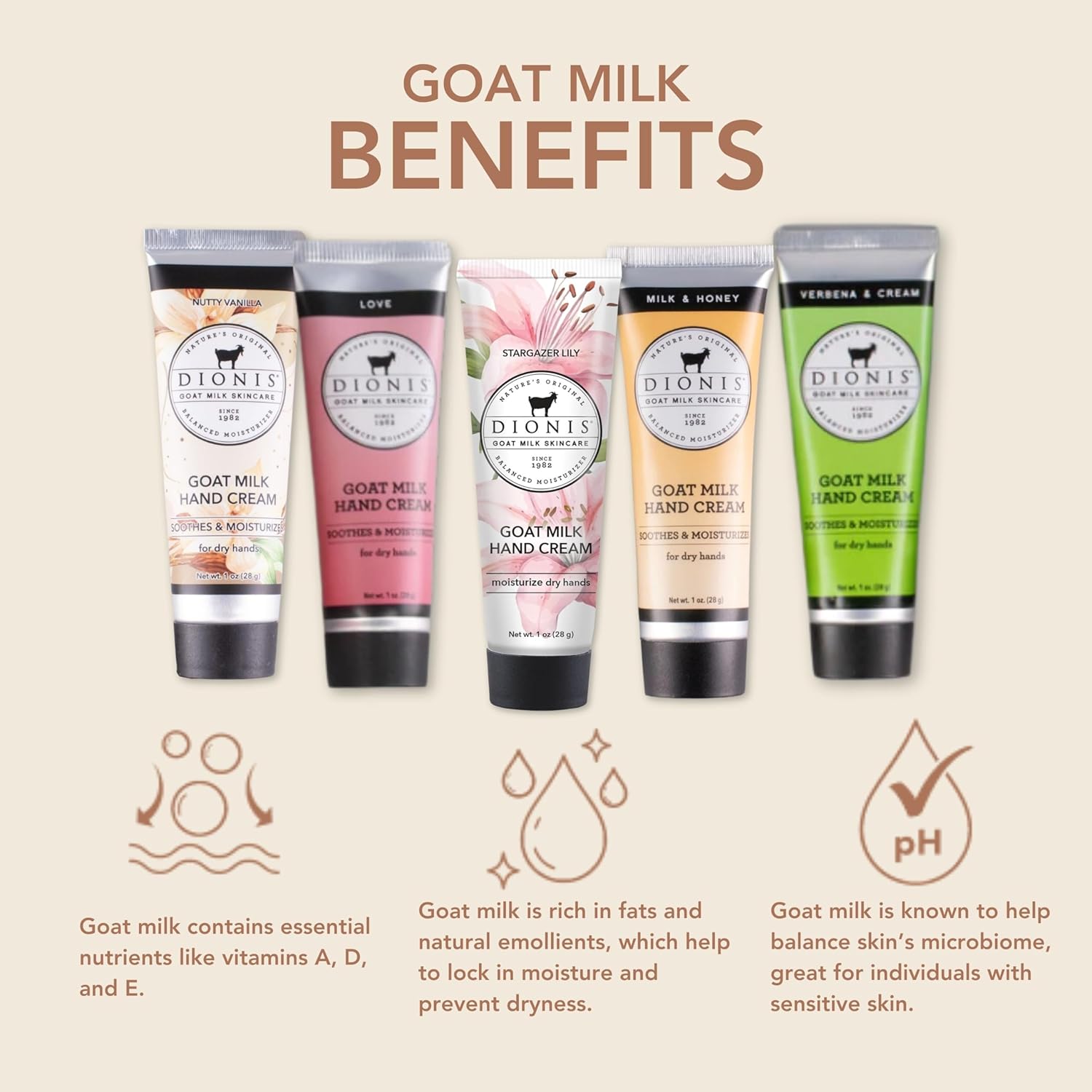 Dionis Goat Milk Skincare Hand Cream Gift Sets – Assorted Scented Travel Size Hand Creams In a Gift Box – Mini Hand Lotion Self Care Gifts for Women, Cruelty Free Lotion For Dry Skin, Inspire 2024