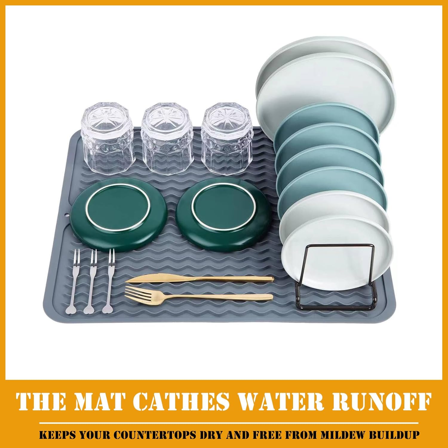 1 pc Gray 16x12inches Dish Drying Mat The Dish Drying Kitchen Mat is a versatile and convenient solution for air-drying your dishes and kitchenware. Made from high-quality, food-grade, this durable mat is designed to withstand heat, water, and everyday use.