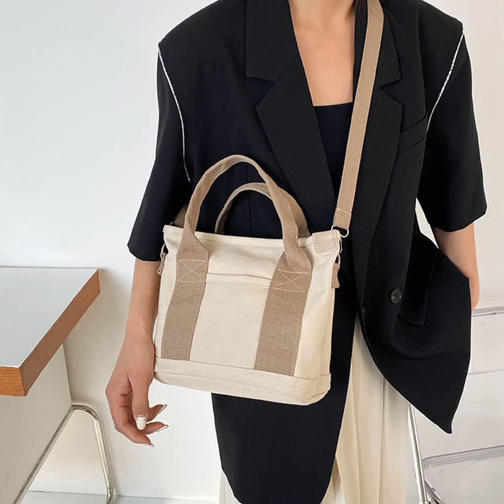 Disnxoo Canvas Tote Bag Women Small Handbag Stylish Satchel Bag Mini Fashion Shoulder Bag Japanese Crossbody Bag Travel Bags, #1 Khaki, One size