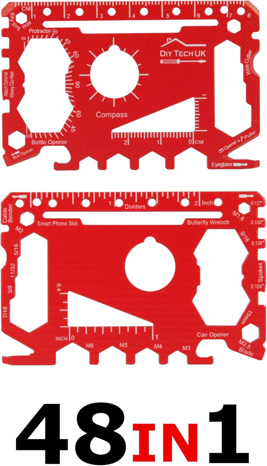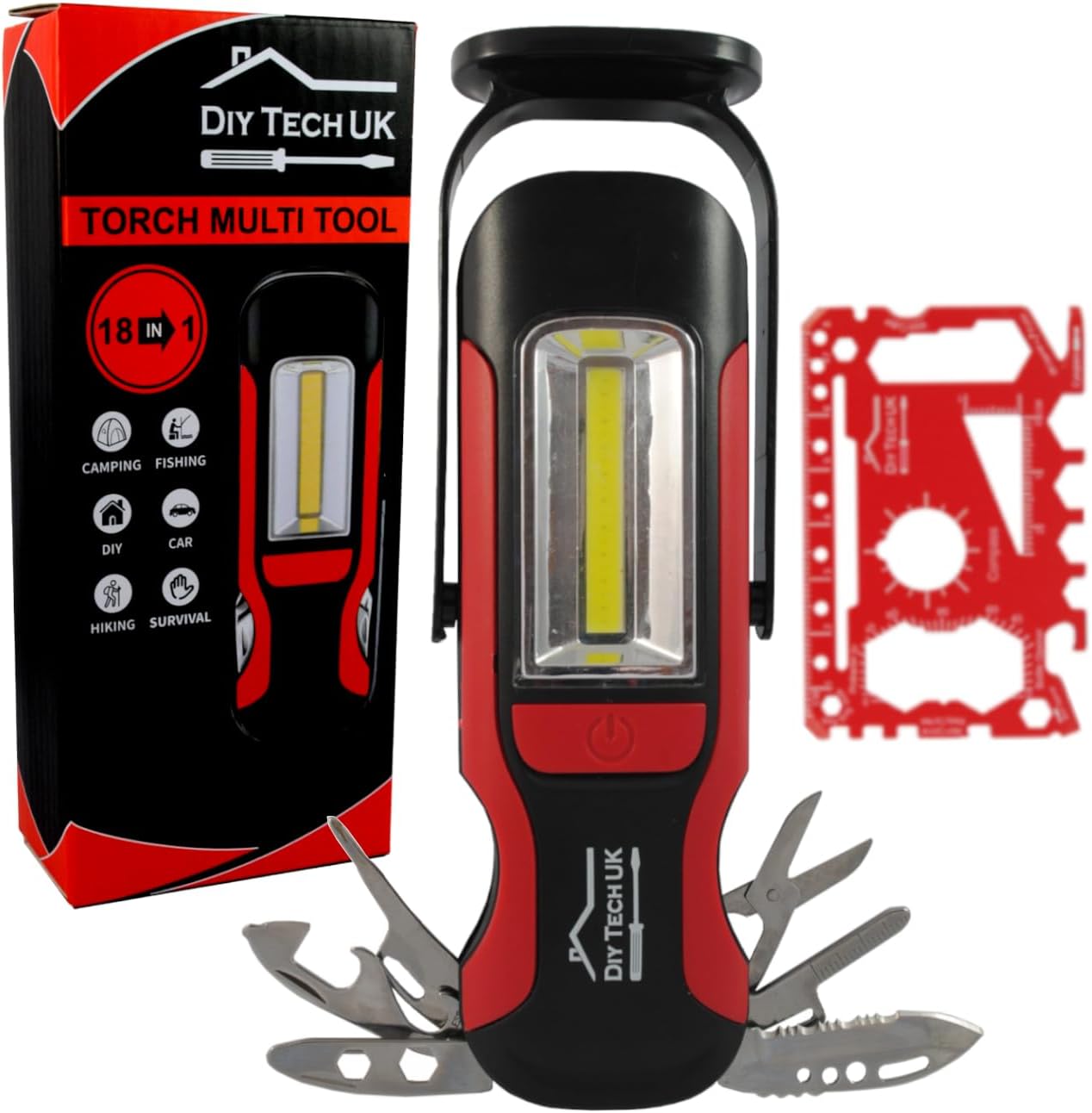 DIY TECH UK – 18 in 1 Torch Multitool Gifts for Men + Free 48 in 1 Wallet Tool – 300 Meter Beam – Valentines Day Gifts – Christmas Him Who Has Everything Women Gadgets Camping DIY Power Cuts – Red