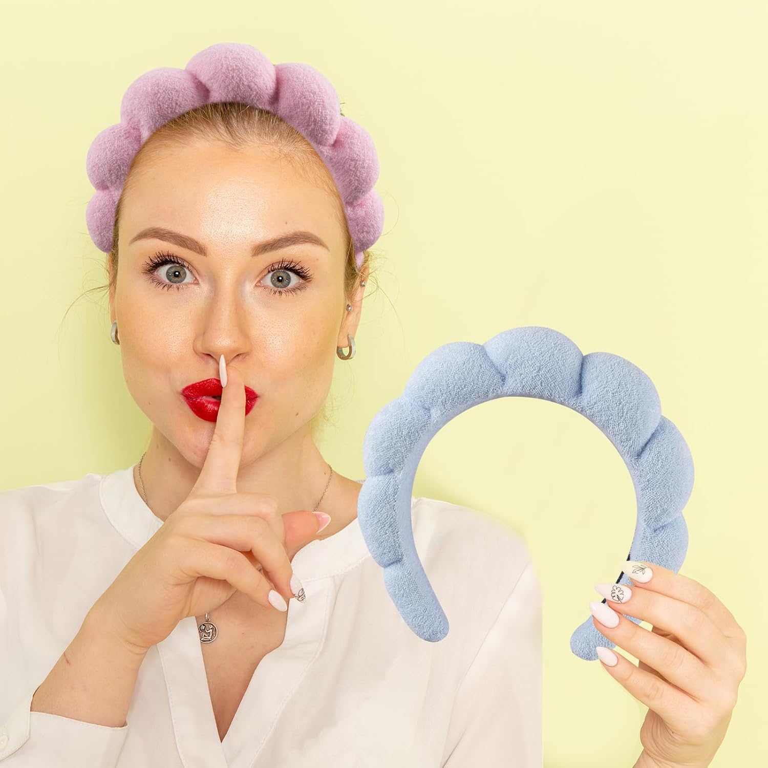 🎀【Unique Design】The headbands for women for washing face, appropriate width and thickened sponge design, puffy headband is like flowers, and clouds, soft, unique, and versatile,can modify your face shape. bubble headband for washing face and face wash wristbands the good elasticity makes it more convenient to wear and fit most people, the lovely appearance makes you more charming.