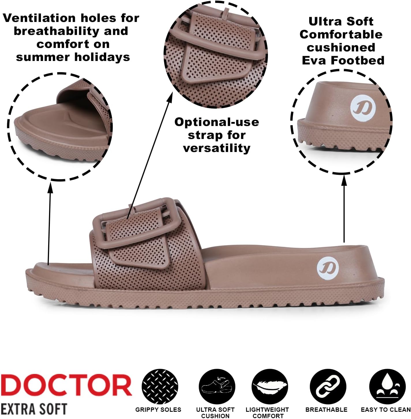 DOCTOR EXTRA SOFT Women’s Classic Cushion Sliders/Slippers with Adjustable Buckle Strap for Adult|Comfortable & LightWeight|Stylish & Anti-Skid|Waterproof & Everyday Flip Flops for Ladies/Girls D-526