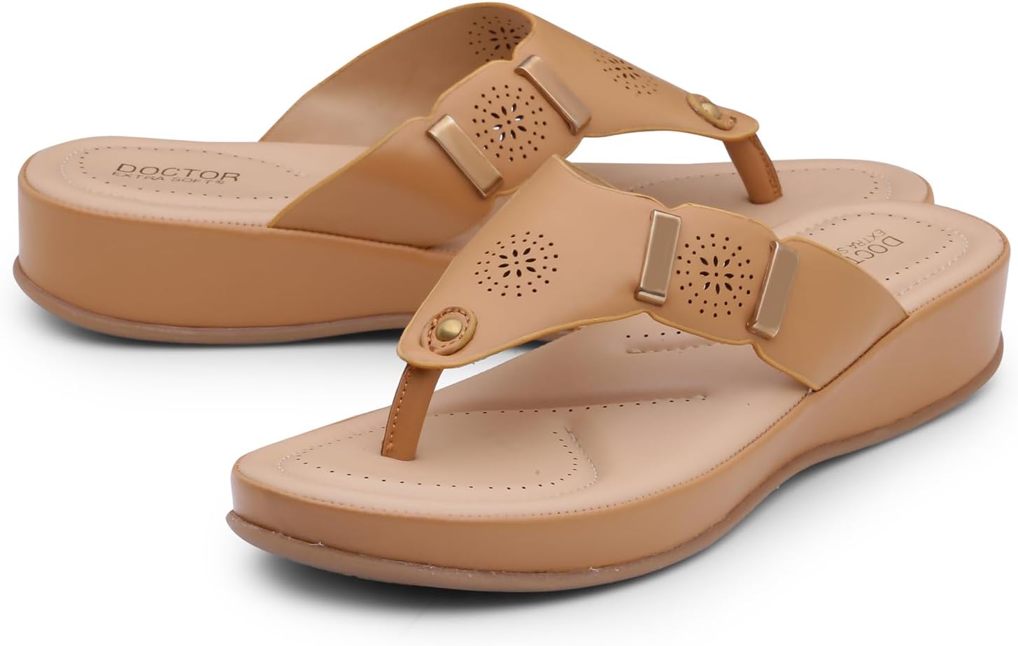 DOCTOR EXTRA SOFT Women’s Comfortable Memory Foam Thong Doctor Slippers/Flip-Flops| Fashionable Casual & Stylish| Lightweight & Breathable|Outdoor Synthetic Casual Chappals Sandals Ladies/Girls D-617