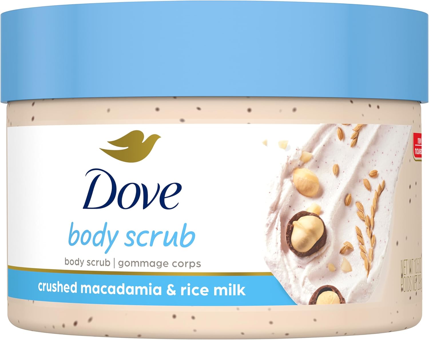 MODERATE EXFOLIATION – Made with medium-sized exfoliating particles, Dove Exfoliating Body Polish Macadamia and Rice Milk is smooth and easily spreadable with a mild lather
