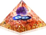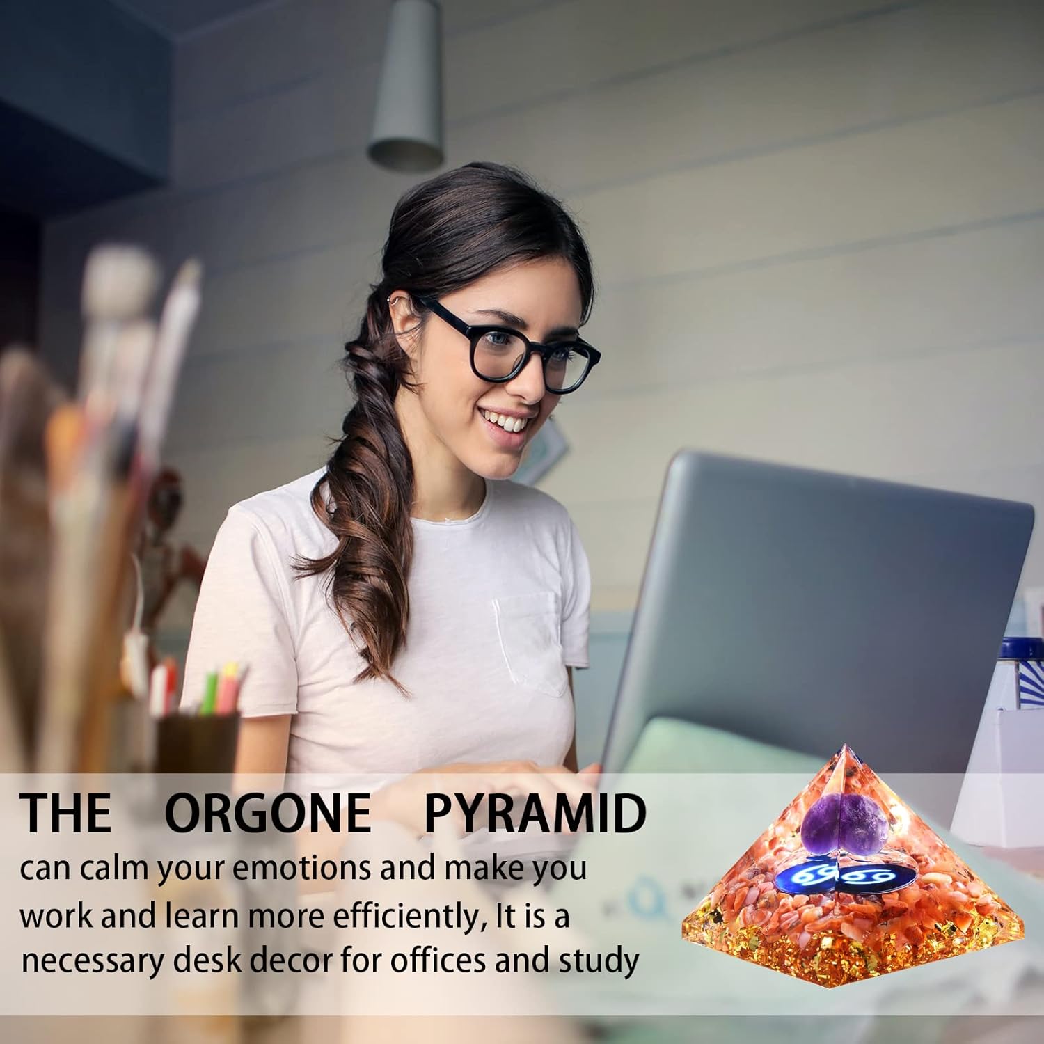 【Product composition】 The Orgone pyramid is made of high-quality gold foil, healing crystal stone and natural resin. 【Perfect size】2.55”x2.55”x2.16”,You can bring the orgone pyramid wherever you want to go! 【Function】 The Orgone pyramid opens the heart, soul and spirit through its healing power. and use it for reiki healing exercises,and yoga meditation. 【Place】You can place this orgone pyramid on your desk, living room, bedroom, office, bookshelf bring you positive energy 【Please note】: Our resin pyraming are handmade, so there are always slight deviations in size, color, shape and appearance compared with photos.