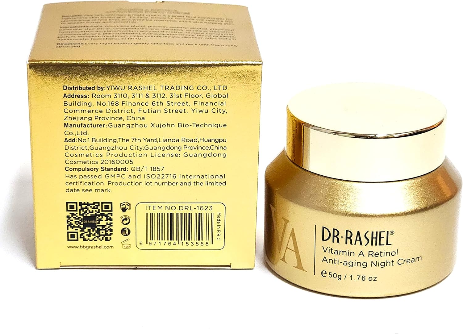 Dr Rashel VA Vitamin A Retinol , Anti – Aging Night Cream , Size 1.76 oz ( Pack of 1 ) . This Rich Night Cream restores the skin’s natural vibrance and clarity with powerful Vitamin A. boost of antioxidants repair and protect from environmental damage and sun exposure , It helps protect the skin against the effects of aging. As it is a fresh, lightweight gel formula, Vitamin A stimulates collagen production to reduce the appearance of wrinkles, fine lines, and crow’s feet .