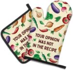 DYJYBMY Your Opinion was Not in The Recipe Funny Oven Mitts and Pot Holder Set, Funny Kitchen Gadgets for Women, Housewarming Gifts for Hostess, Birthday Gifts for Bake Lover Mom Wife Aunt Sister BFF