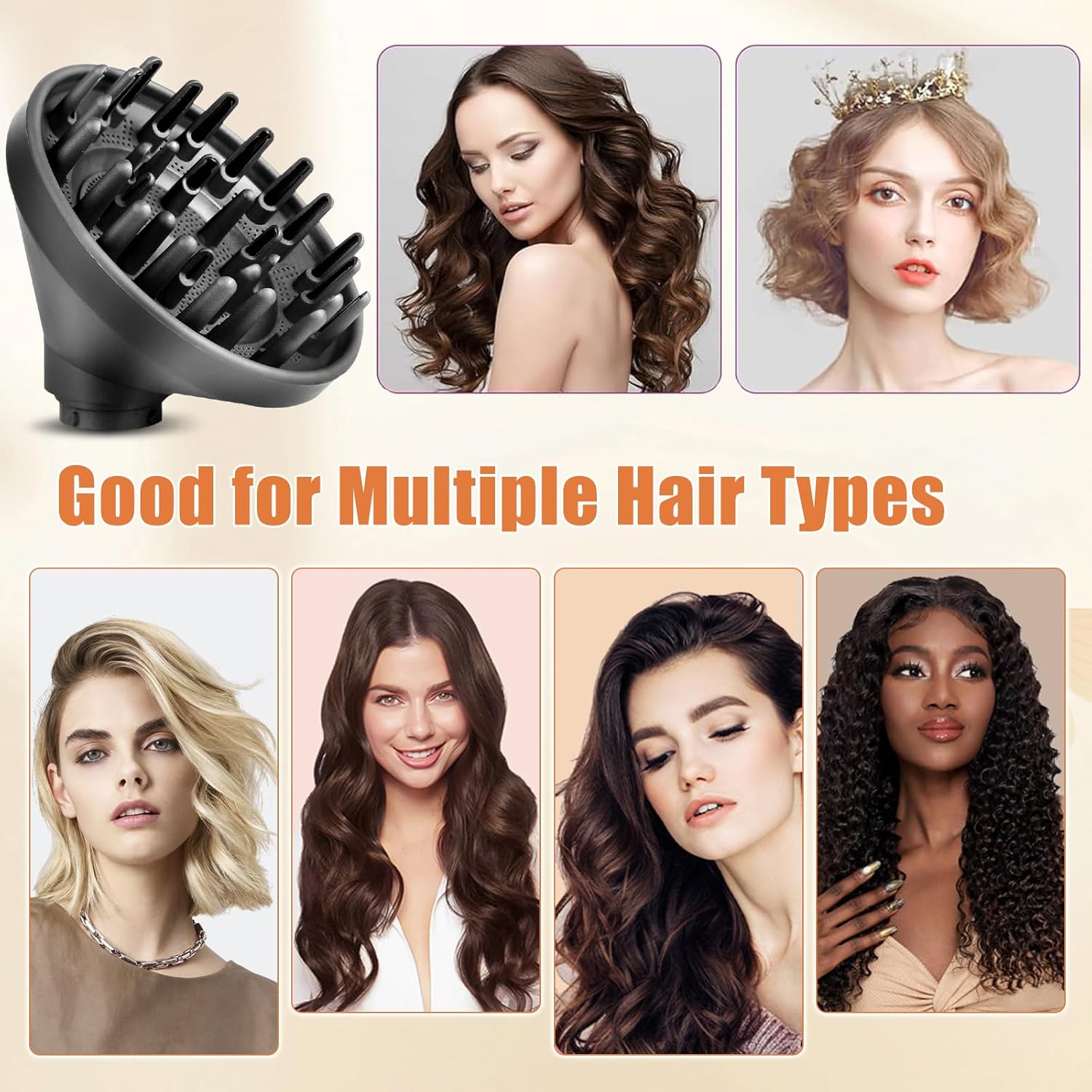 The diffuser nozzle is made of high-quality material and has a large area to dry the hair quickly. The extended, evenly arranged prongs distribute air evenly and deep throughout the hair, simulating natural drying and help reduce frizz and flying hair
