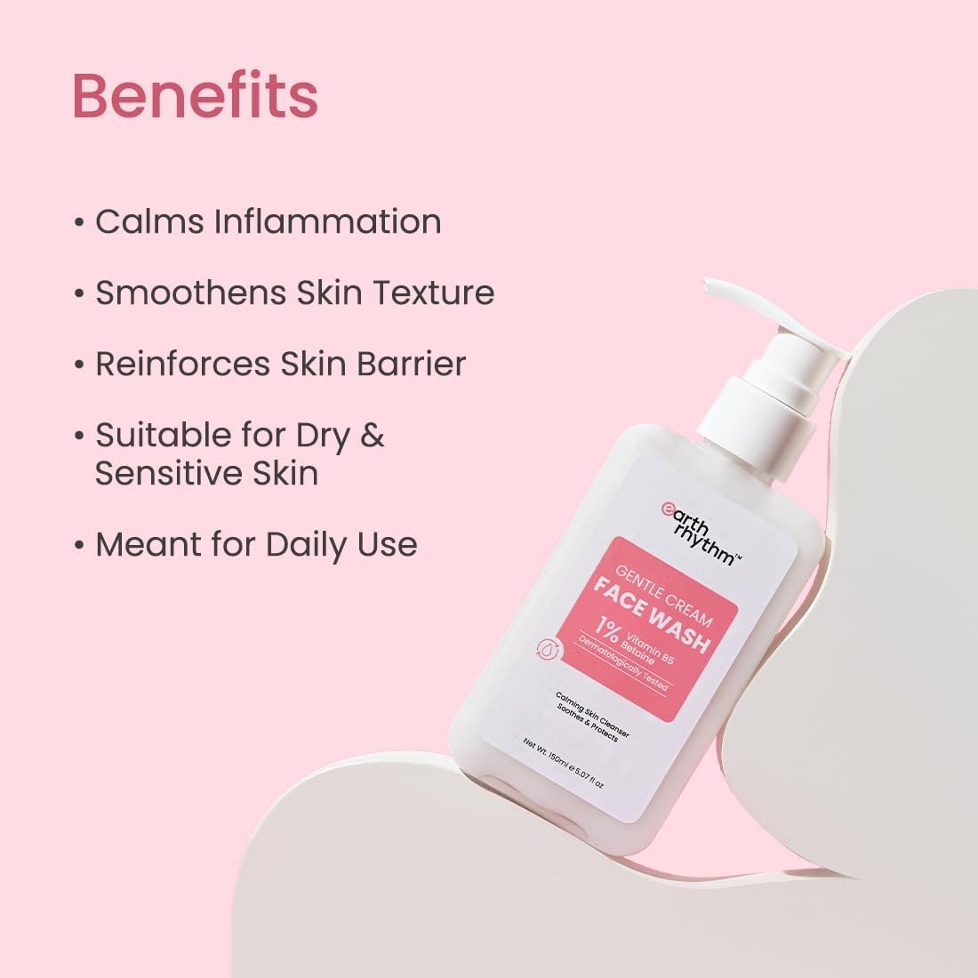 Earth Rhythm Gentle Cream Daily Face wash with Vitamin B5, Dermatologically tested | for Dry and Sensitive skin, Men & Women- 150ml