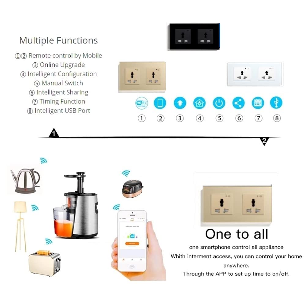【High Quality】: 4mm tempered glass wall plate. Fire-resistant PC base material. Our Wifi home socket wifi is Fireproof and Waterproof. Protection Against Electric Shock for Your Family.