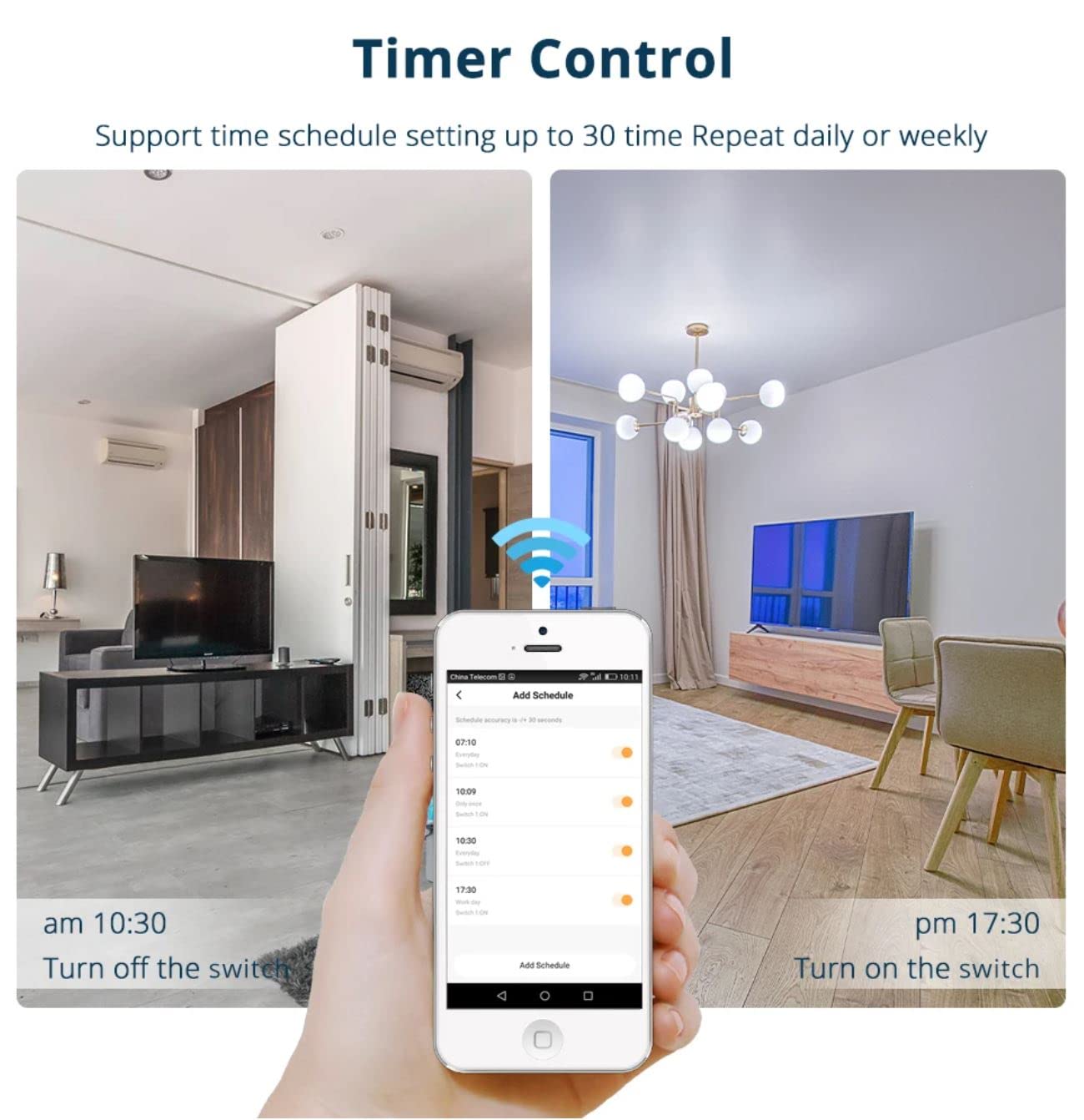 【Timer and Scheduling】Turn connected devices on and off at designated times. Schedule the living room light to turn on in the morning or schedule your kids’ lamp to turn off to let them know it’s bedtime to your own need.