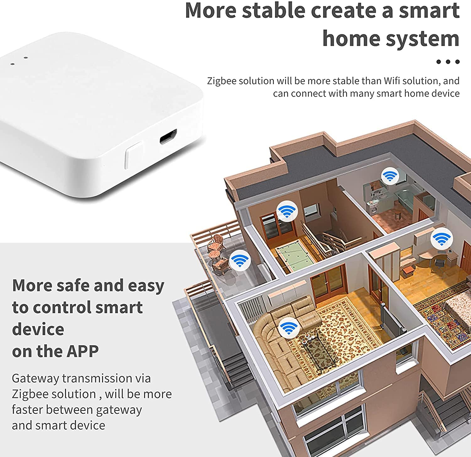 4. Zigbee’signal more stable – it is stable and reliable enough to covers a wide range of areas for normal work of any connected devices to the hub.