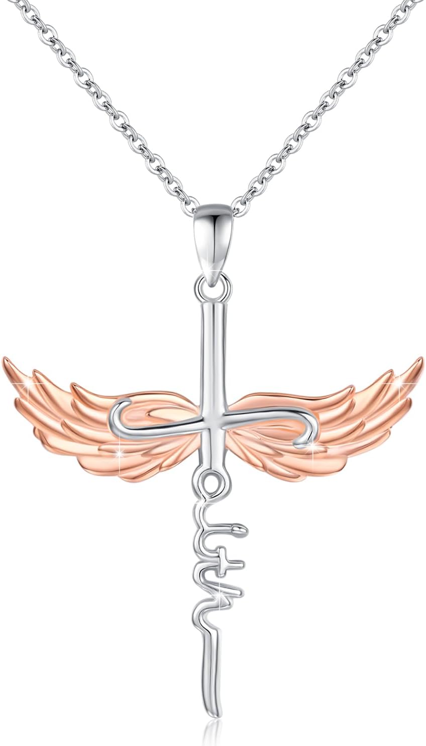 ECHOOY Faith Necklace 925 Sterling Silver Angel Wings Faith Wings Pendant Necklace Christian Religious Faith Jewelry Gifts for Women Girls Mother’s Day