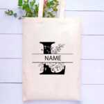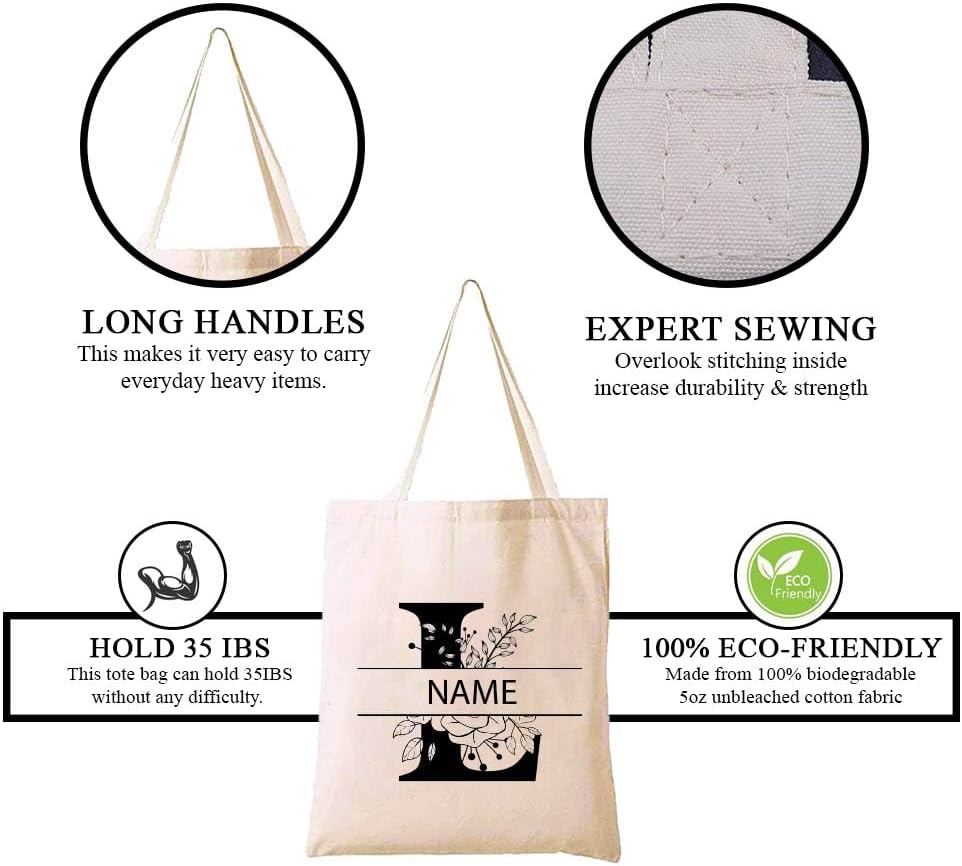 Eco-Friendly Cotton Bag – Initial Monogram Canvas Tote Bag – Customizable Your Name – Perfect for Reusable Grocery Shopping and Travel Bag – Tote Bags for Women