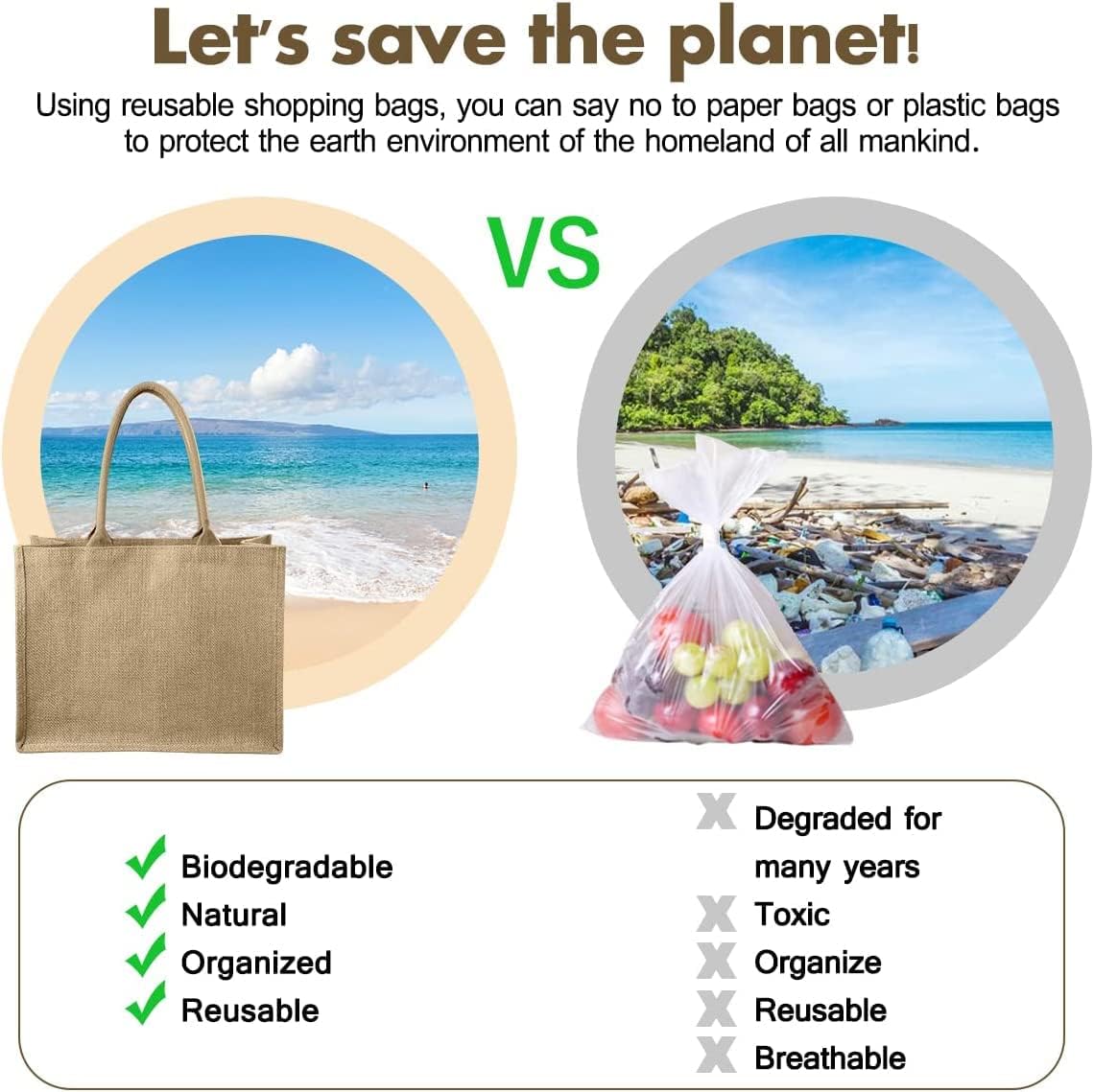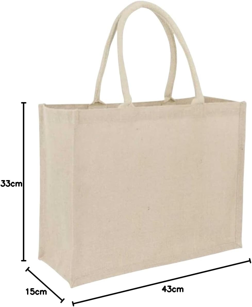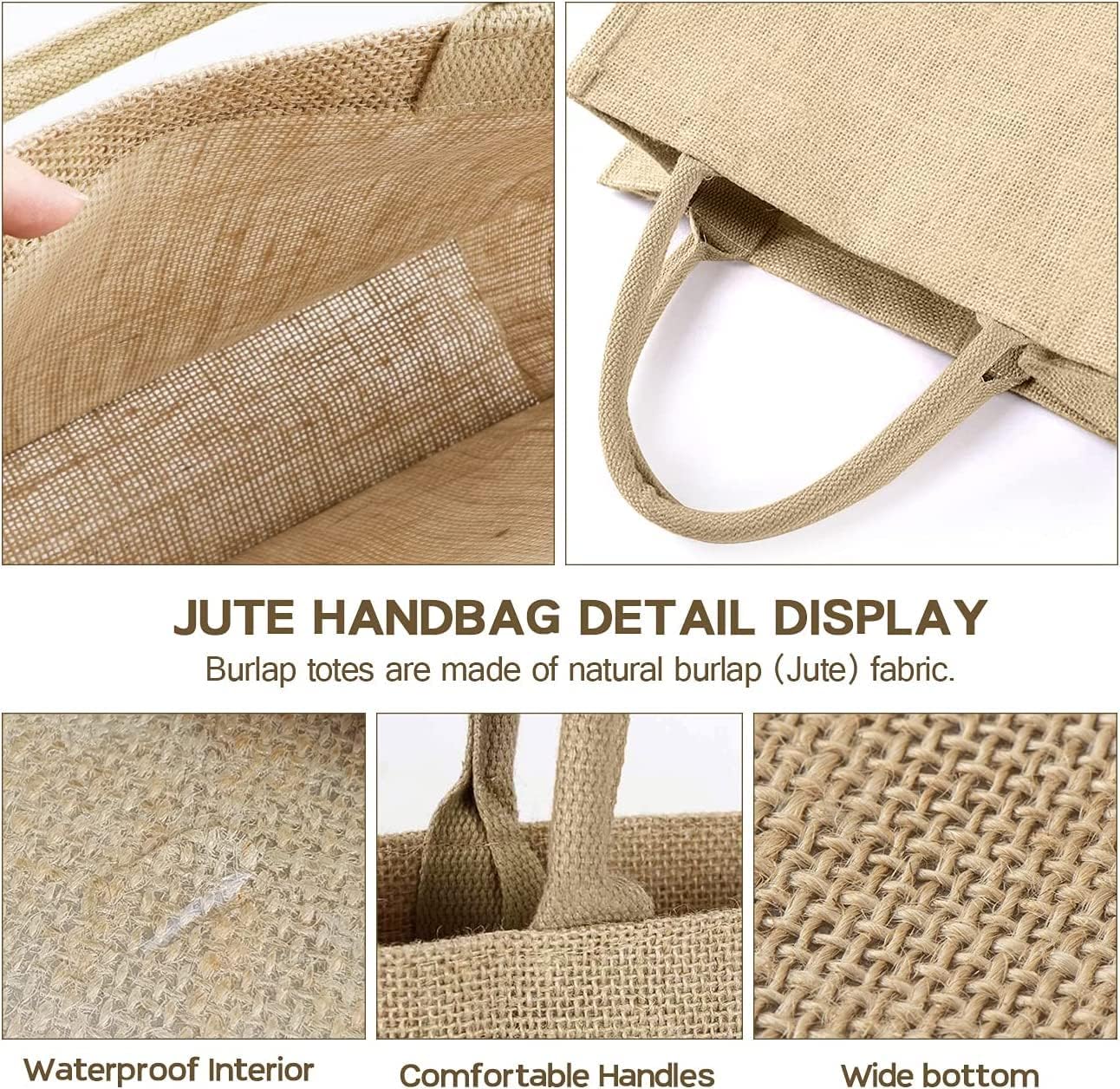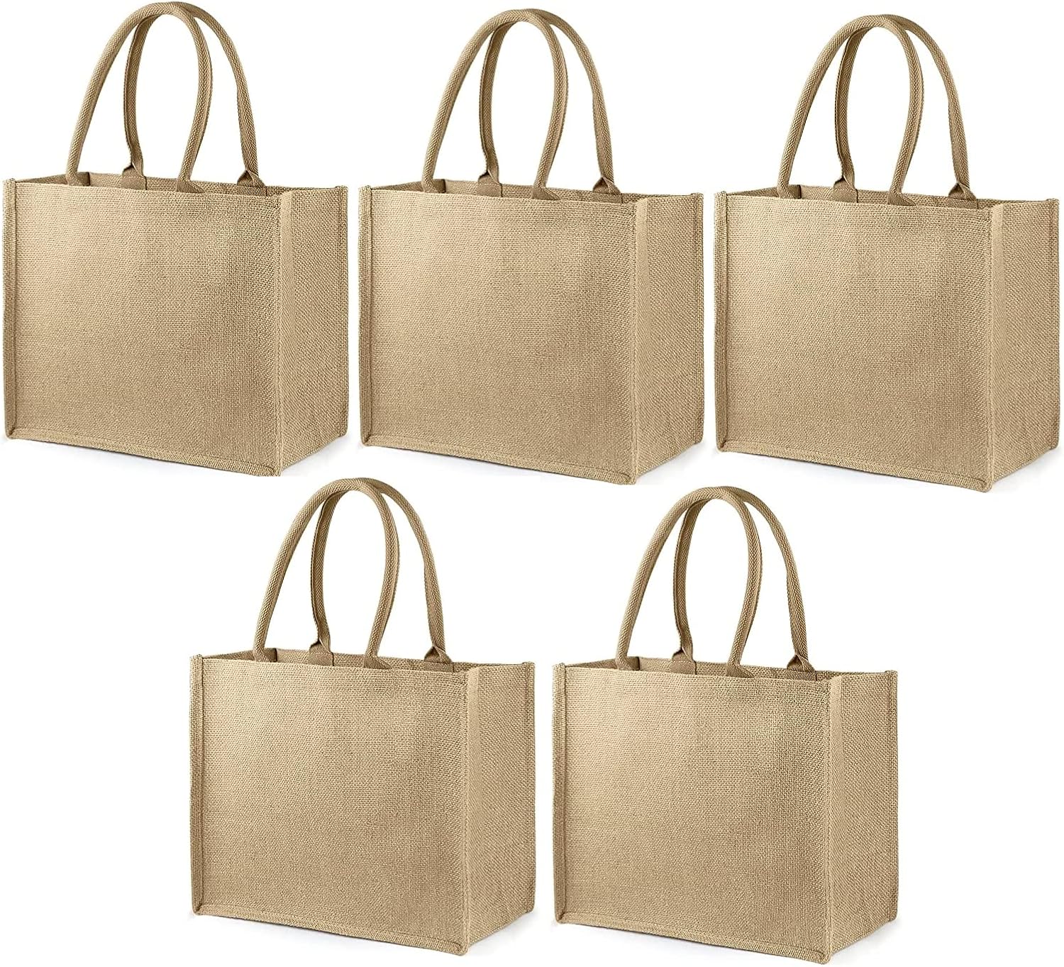 Eco-neutral – Jute Tote Shopping Bag | Bulk/Wholesale Eco-friendly Reusable Grocery Bags | Waterproof coating with soft handle – Pack of 5 (Natural Brown, Horizontal)