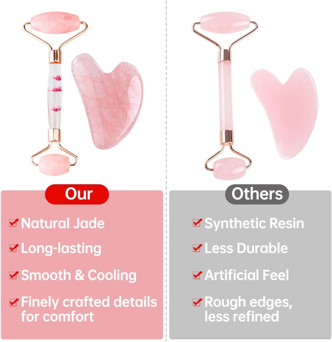 ECVV Gua Sha & Jade Roller Set: Reduce Puffiness & Redness, Boost Skin Care Routine, Ideal Self-Care Gift for Men & Women, Premium Facial Tools