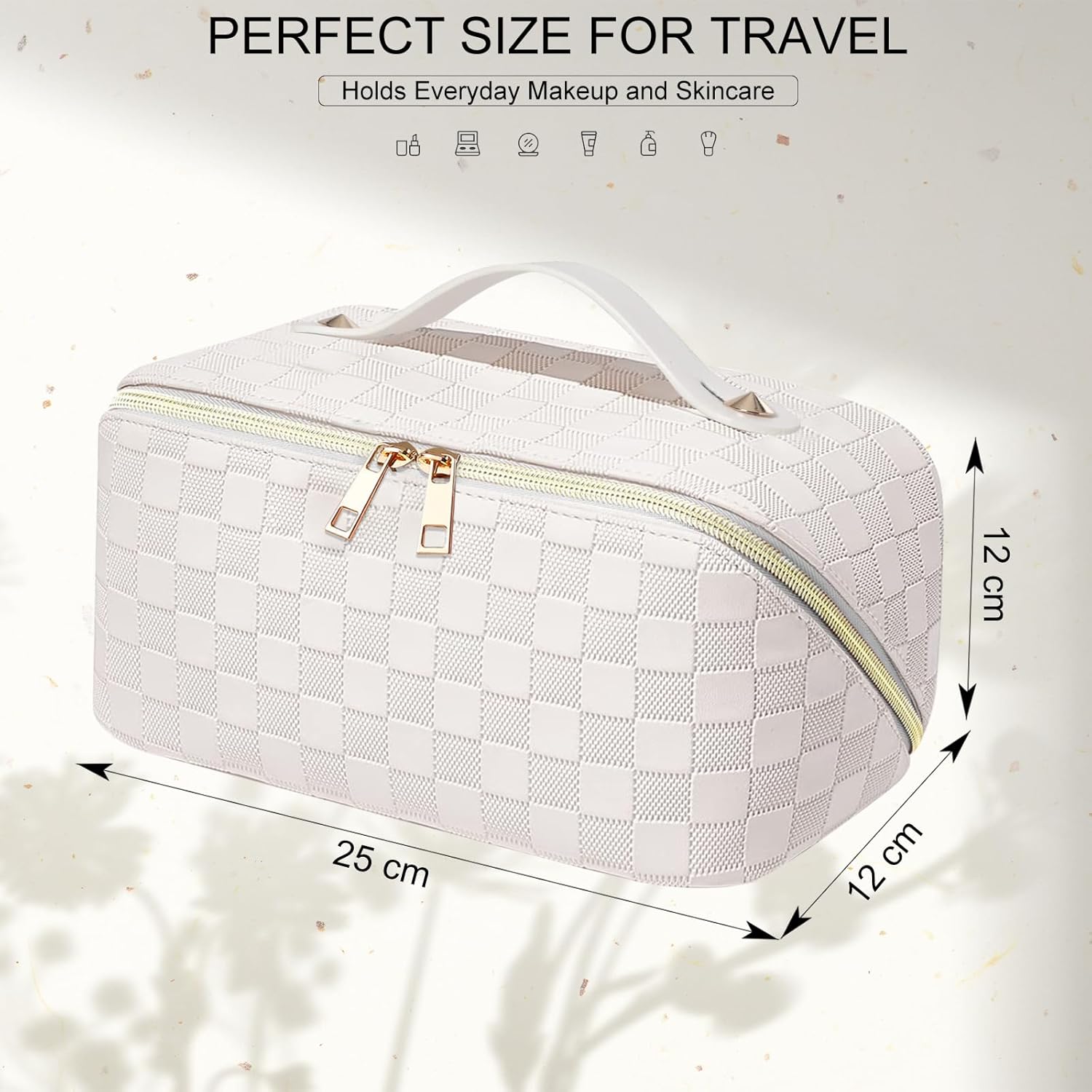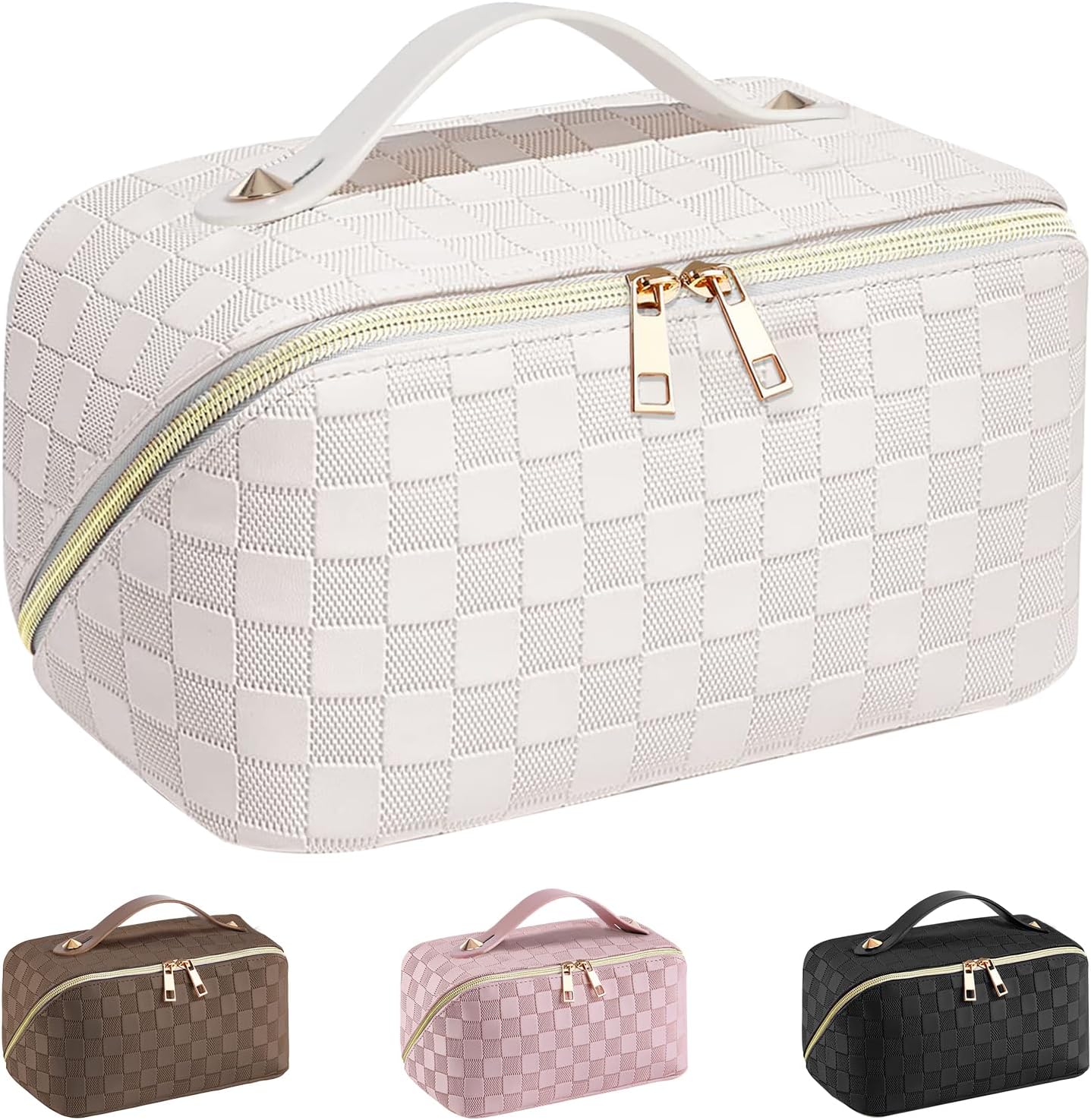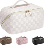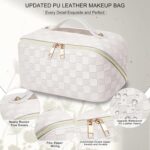 EECH Cosmetic Bag Travel Women’s Make Up Bag with Large Capacity, PU Leather Portable Makeup Bag Toiletry Bag Organiser, Beauty Case for Travel Accessories, Travel Essentials Women (Checked White)