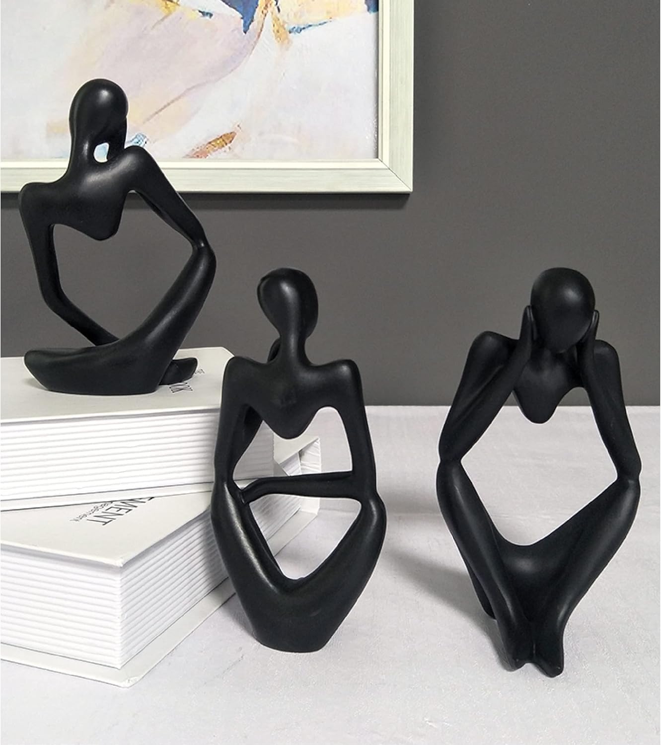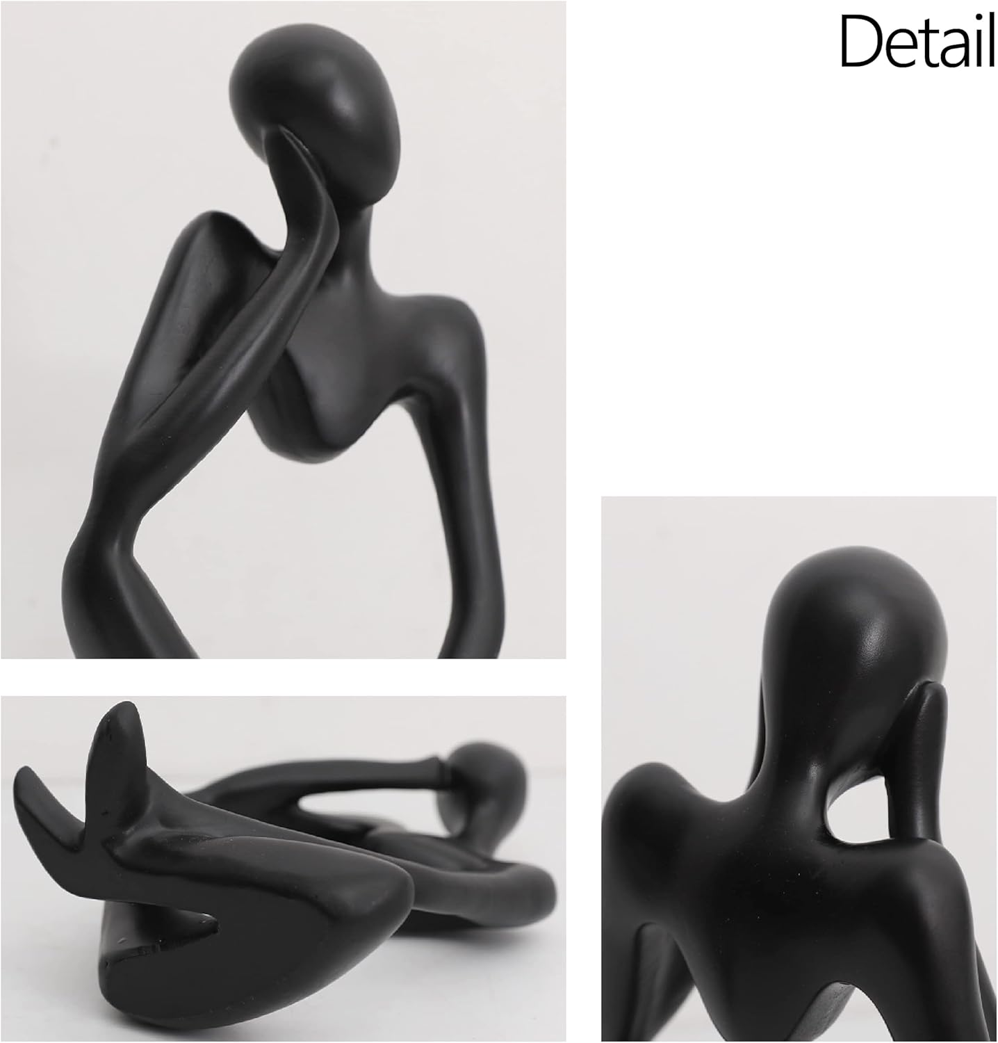 Eguoer Black Decor Thinker Statue Abstract Art Sculpture Collectible Figurines for Office Home Bookshelf Desktop Decoration Gift (Focus, Black)
