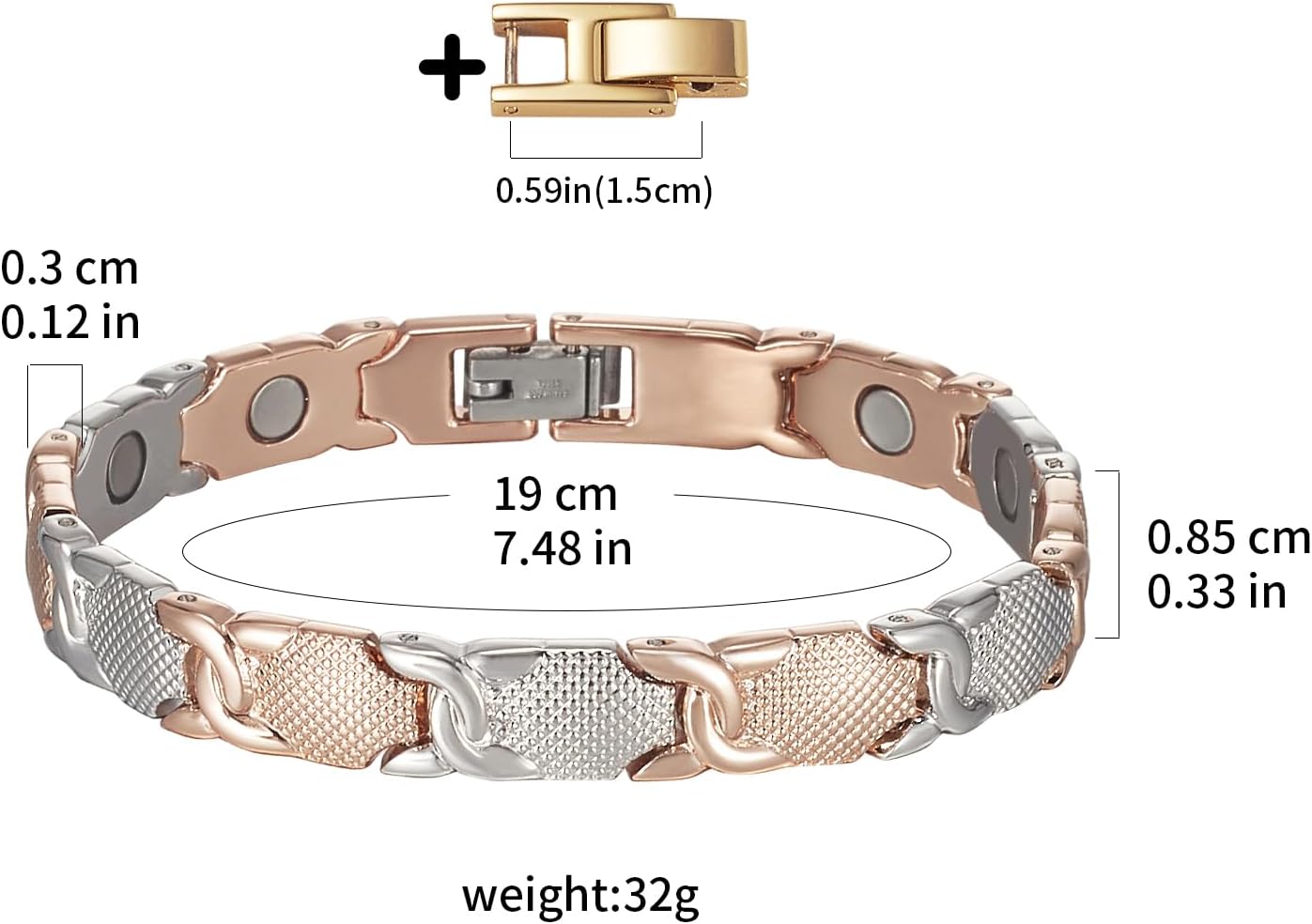 EnerMagiX Tri Tone Magnetic Stainless Steel Bracelets, Brazaletes with Power Magnets, Easy to Adjustable Size, Women’s Day Gift for Mom, Wife
