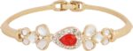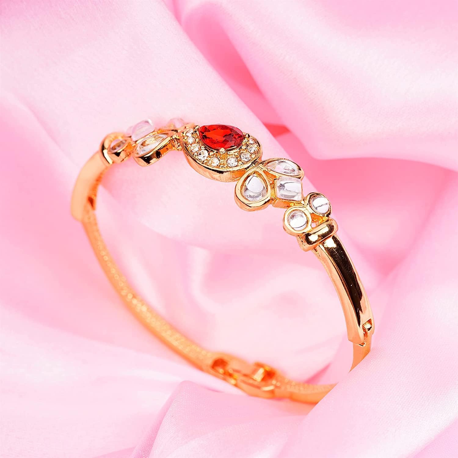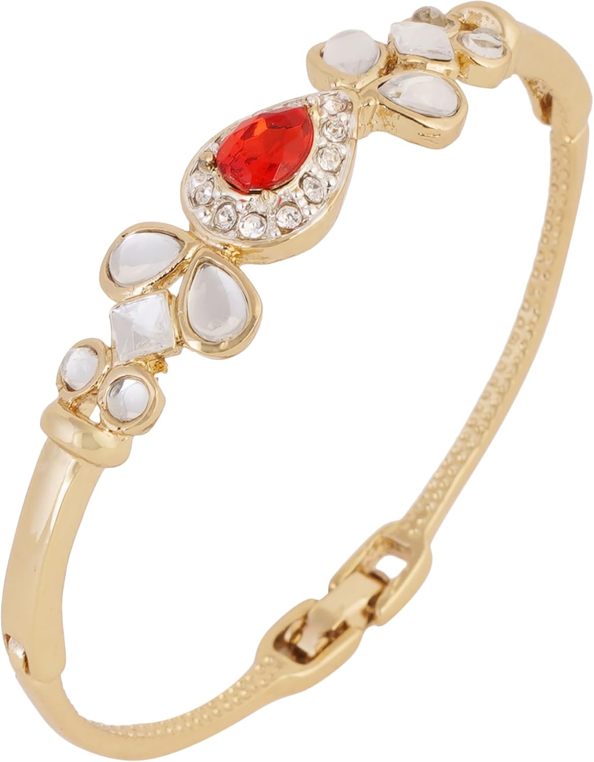 Estele 24 Kt Gold And Silver Plated Non-PrecioUS Metal Brass Ruby Halo Regal Kundan Cuff Bracelet For Girls Adjustable