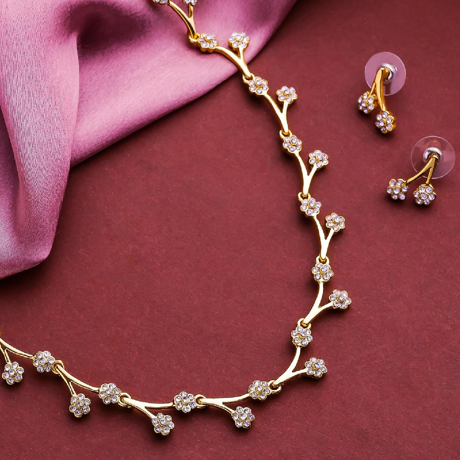 Estele Jewellery Sets for Women Gold Plated Bridal Necklace Jewellery Set with Earrings