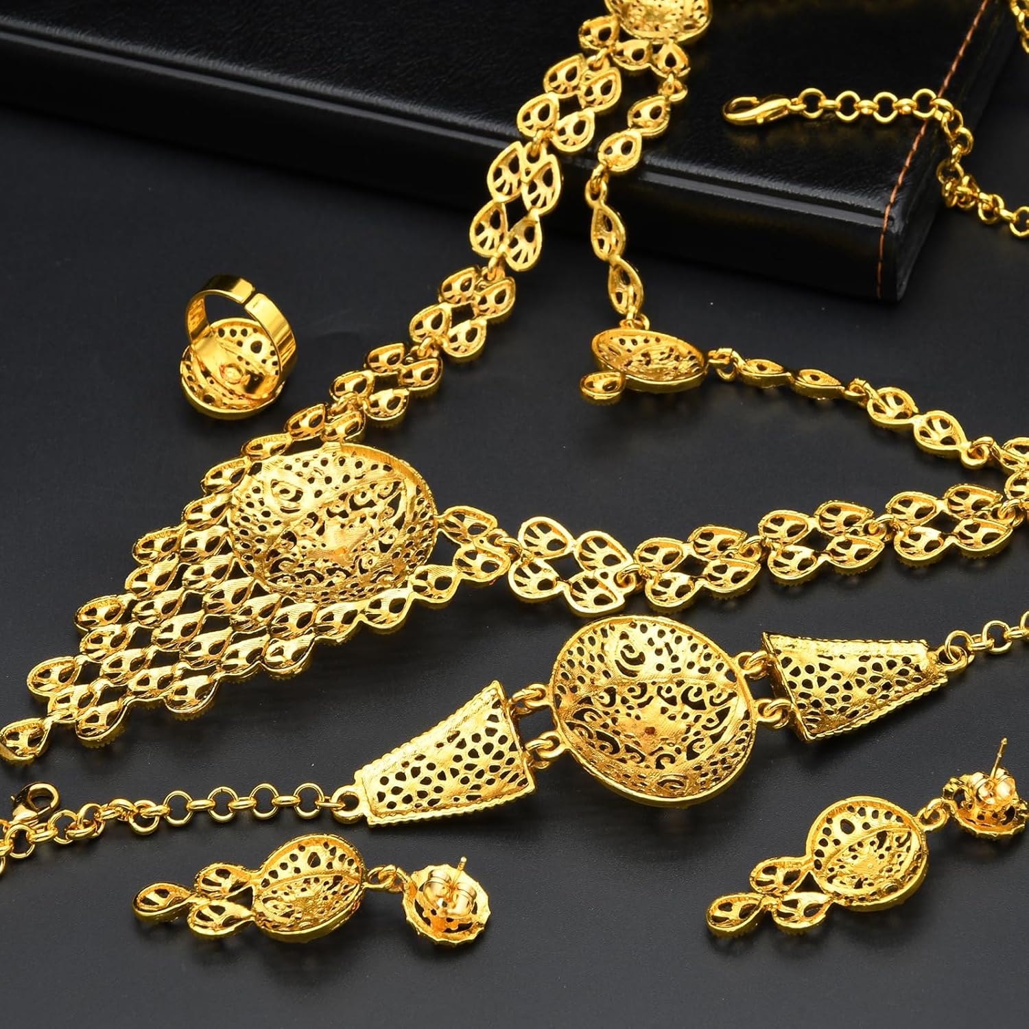 Ethiopian Tassel 24k Gold Plated Jewelry Sets For Women Arabic Wedding Indian Bridal Dubai Necklace Earrings Bracelet Ring Set for Lady Wife Mother