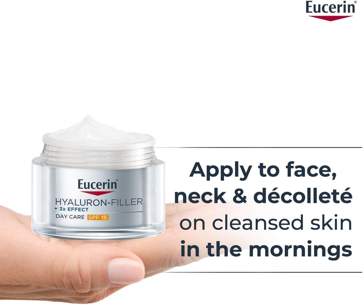 Eucerin Hyaluron Filler Anti-Aging Face Day Cream with Hyaluronic Acid, Plumps up Deep Wrinkles, UVA & UVB Protection, SPF 15, Moisturizer for Dry Skin, 50ml