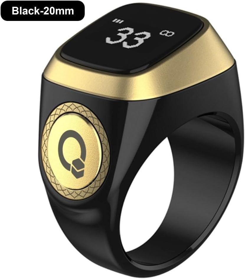 eWINNER 20MM Smart Ring Counter for Men & Women, Digital Tasbeeh Tasbih Finger Counter, Muslim Islamic Prayer Smart Ring, Unisex Azan Alarm Clock, 5 Prayer Time Reminder, Pray Trackers (Black)