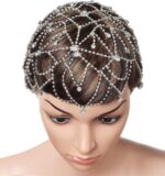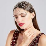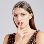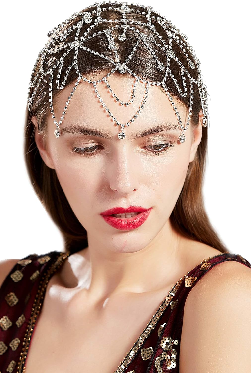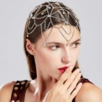 Excefore Flapper Headband Rhinestone Elastic 20s Bridal Headpiece Great Gatsby Accessory with Rhinestones Chain for 1920s Themed Wedding Costume
