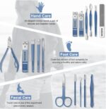 Excefore Manicure Set, Professional Nail Clippers Pedicure Kit, Stainless Steel Nail Care Tools, Grooming Kit with Luxurious Travel Leather Case for Thick Nails Men Women Gift (16PCS, Blue)