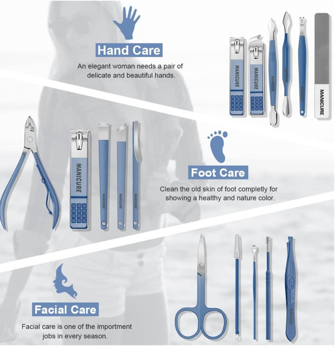 🔧【VERSATILE USAGE】: This manicure set fulfills all your essential hand, foot, and facial care requirements. Say goodbye to purchasing separate nail clippers, scissors, tweezers, or files; our comprehensive set includes 16 practical beauty tools, offering fantastic value for money.