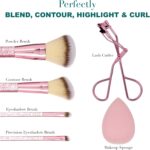 Expressions 6pc Makeup Brush w/Eyelash Curler and Makeup Sponge Beauty Blender | Premium Cosmetic Brushes for Contouring and Highlighting