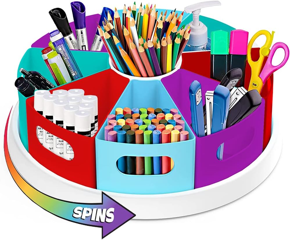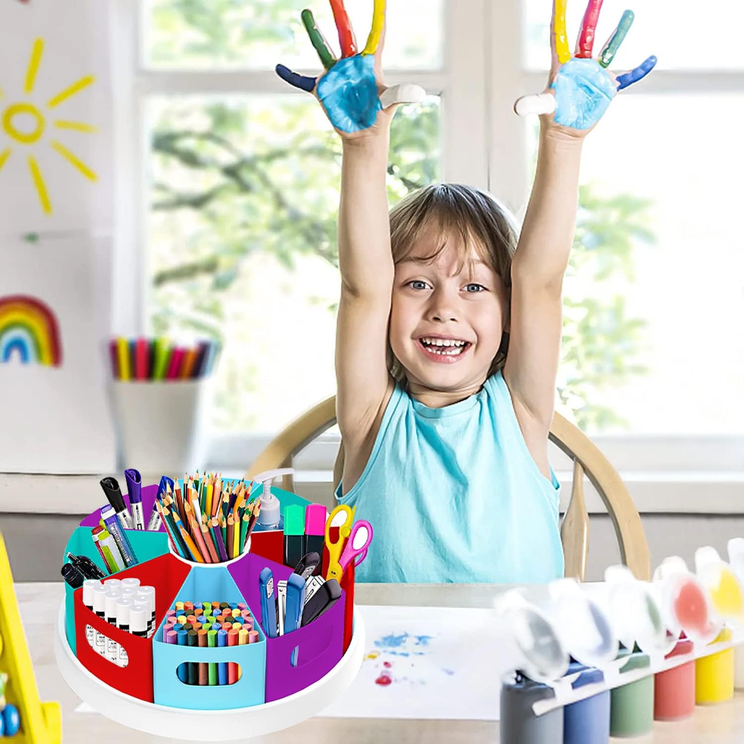 Exrp Rotating Art Supplies Organizer Storage Caddy for Kids | Crayon Marker and Pencil Organization for School Desk Teachers Classrooms and Crafts at Home