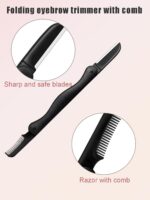 Razor with Comb: Fold and unfold the comb ends as needed. Gently glide over eyebrows to trim and shape.